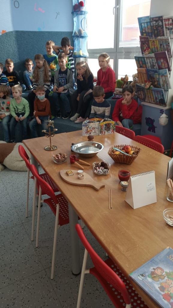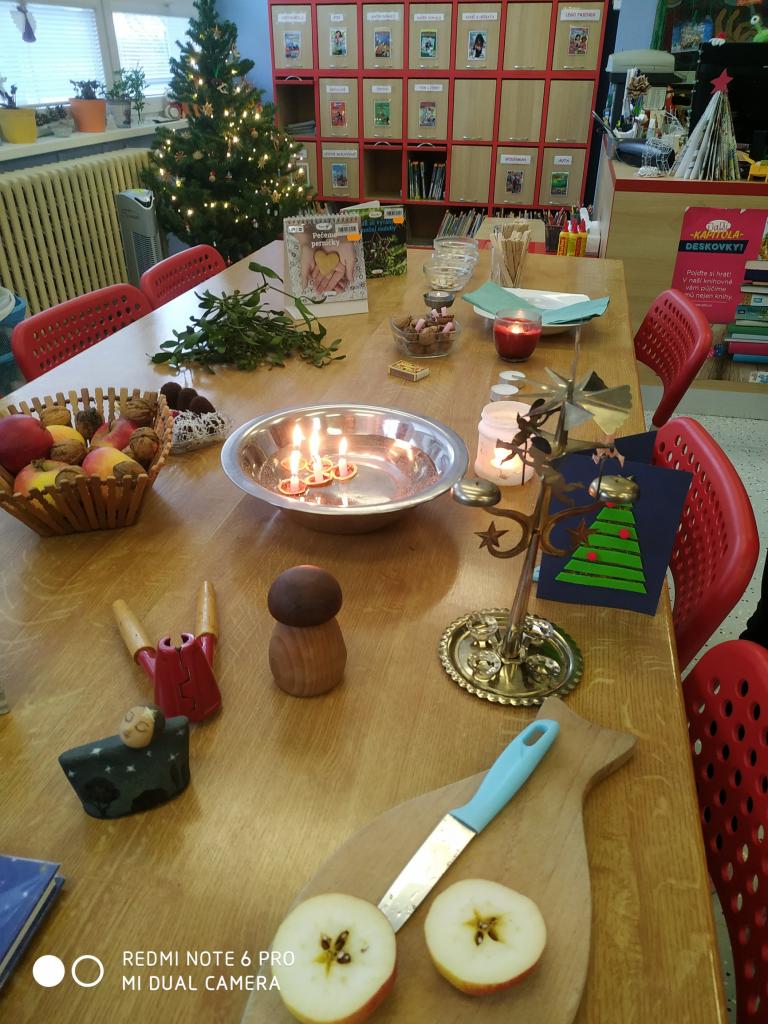Děti ze 4. a 6. oddělení se při návštěvě knihovny seznámily s vánočními zvyky a tradicemi. Viděly rozkrojování jablíčka, pouštění lodiček a mohly si vyrobit jednoduchý betlém. Dětem se to moc líbilo a budeme se těšit na další návštěvu.