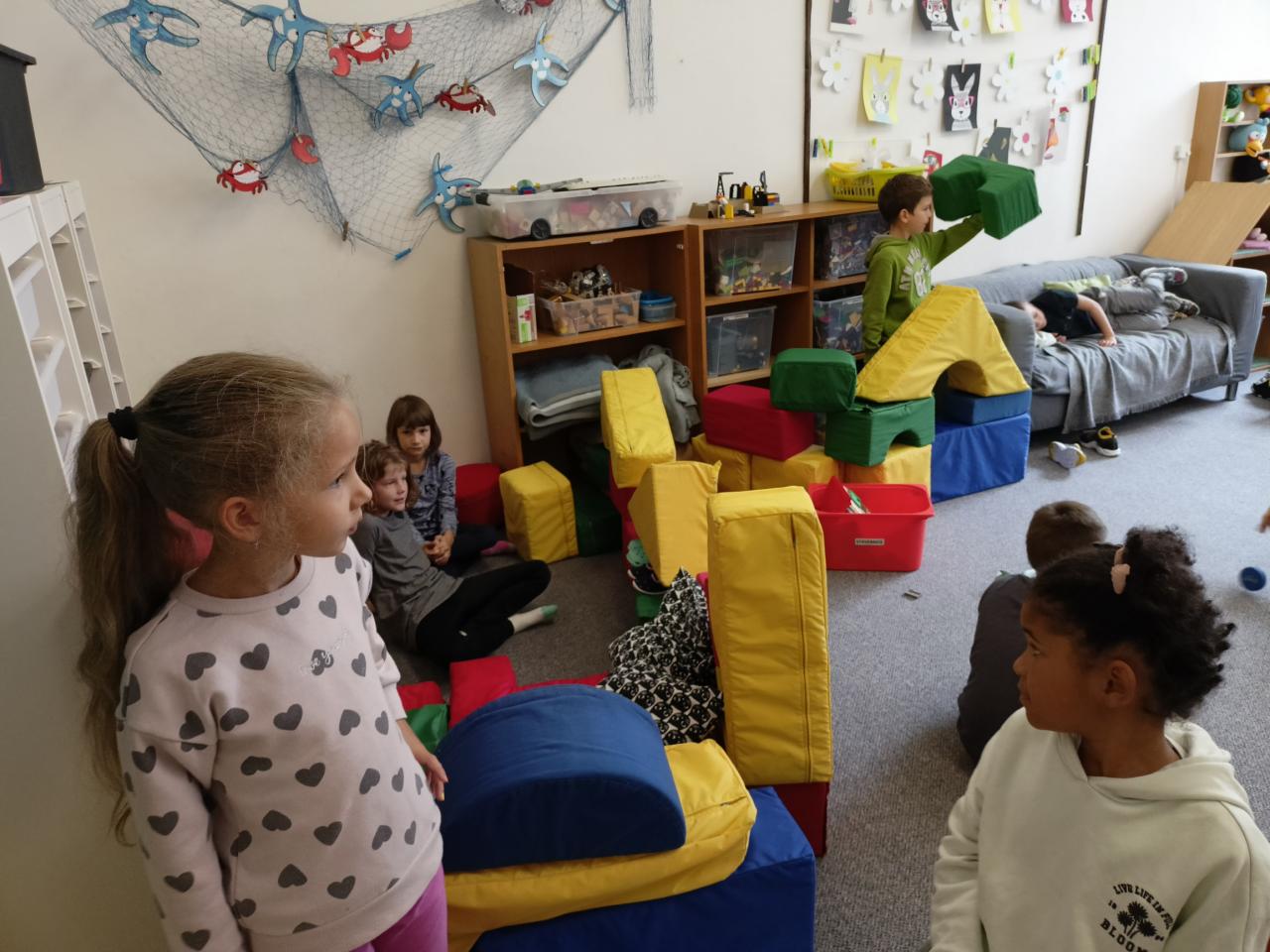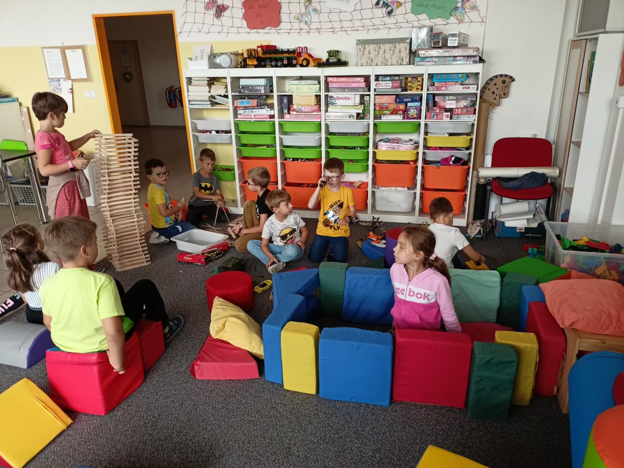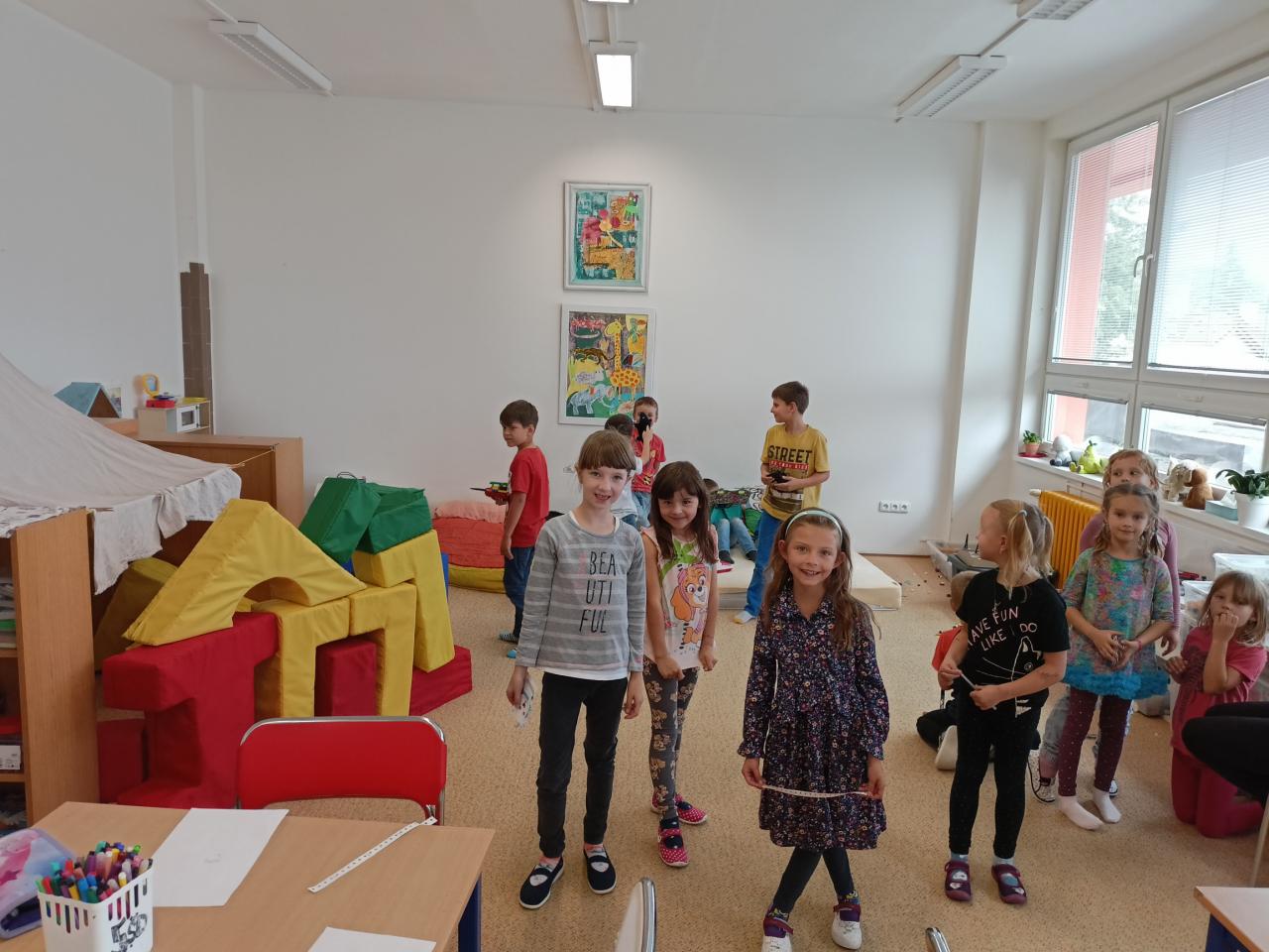 Prvňáčci se seznamují se školní družinou a staršími kamarády.
