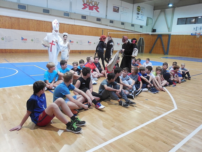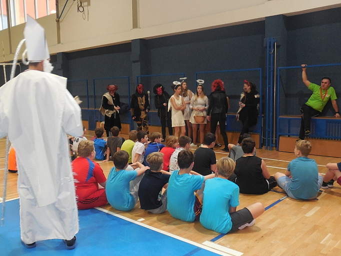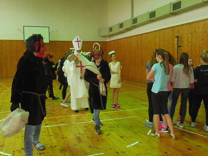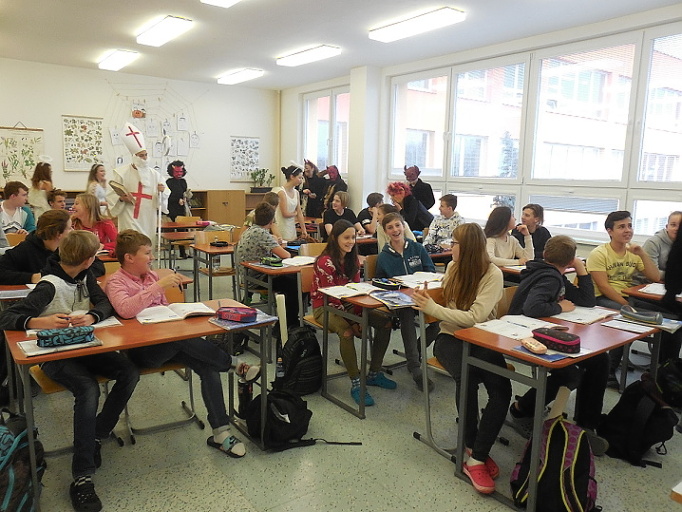 Dne 5.12. 2017, den před svátkem sv. Mikuláše, zavítala Mikulášská družina i k nám do školy. Žáci a žákyně devátých ročníků se proměnili v anděly nebo čerty a v doprovodu sv. Mikuláše navštívili výuku na prvním či druhém stupni. V případě, že třída předvedla Mikulášovi, že umí nějakou básničku či písničku, odměna ji neminula. V tento den byl pro žáky přichystán ještě jeden program, a to Mikulášské bruslení od 10.00 do 12.00 hodin, které zajistilo vedení Školního parlamentu. Na ledě se vystřídaly první i druhý stupeň. Mile nás překvapil veliký zájem o tuto sportovní aktivitu. Je vidět, že máme ve škole šikovné bruslaře :-). Za podporu děkujeme VSH Slaný. Věříme, že si všichni dnešního Mikuláše pěkně užili.
