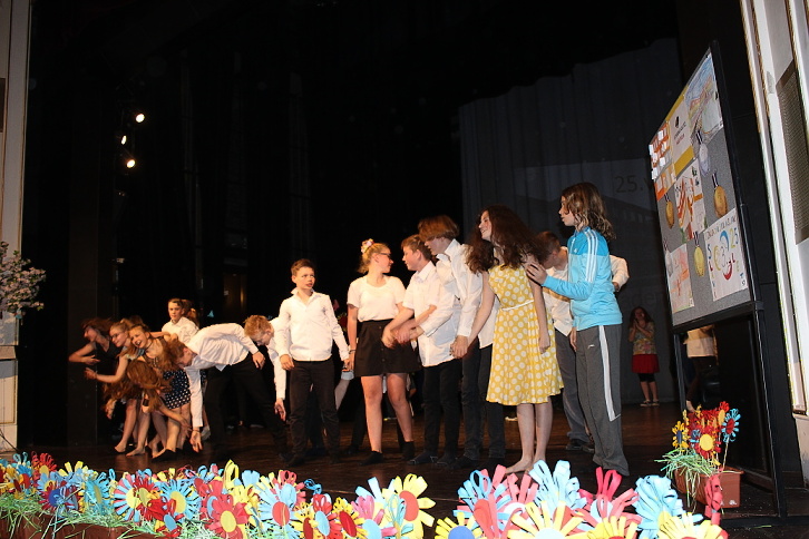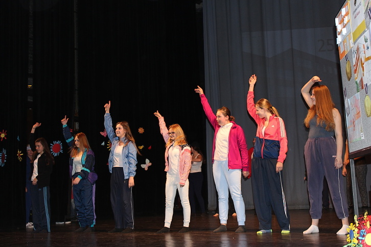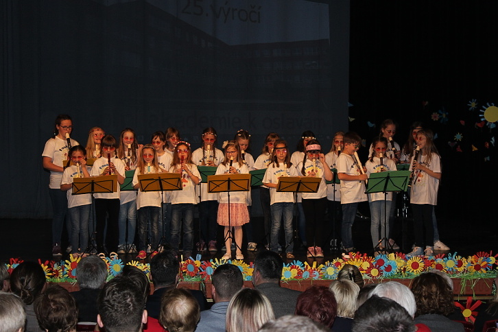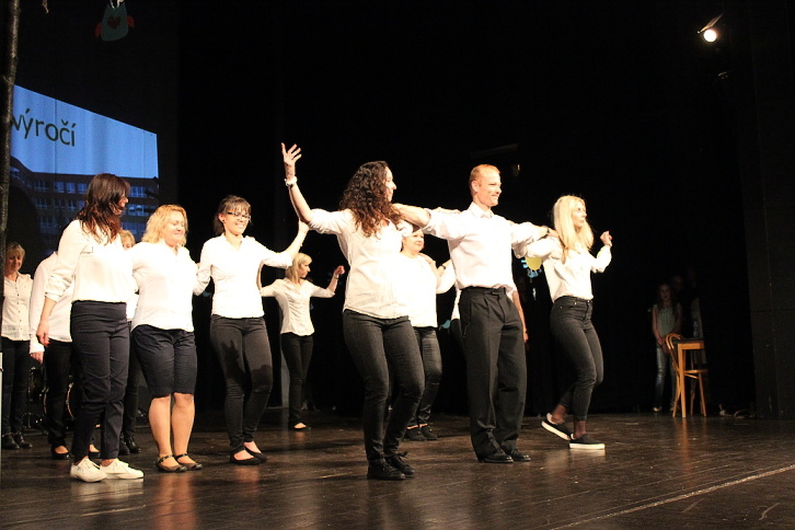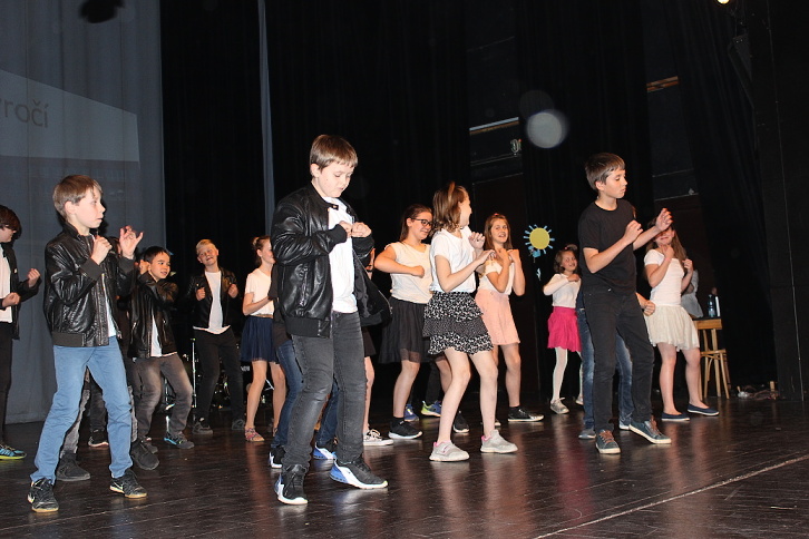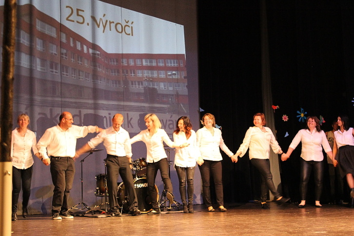 Dne 7. 5. 2015 naše škola oslavila 25. výročí otevření nové školní budovy. U příležitosti tohoto výročí jsme naplánovali nejen setkání současných i minulých kantorů, kteří v předešlých letech na 3. ZŠ působili, ale také jsme uspořádali školní akademii plnou zábavy v podobě tanečních, pěveckých, divadelních, sportovních a dalších vystoupení. A protože „prkna znamenají svět“, nemohli jsme pro naši akademii vybrat vhodnější místo, než Městské divadlo Slaný. Celý tento den se nesl v duchu oslav. Zatím, co někteří žáci dopoledne pilně trénovali na podvečerní představení na „generálce“ v divadle, ostatní se podíleli na výzdobě divadla nebo budovy školy. Po obědě už jsme očekávali návštěvu bývalých kantorů, a také jsme přivítali učitele z partnerské školy v Pegnitz. Vlastní akademie vypukla v 16,30 hodin. Ve dvou částech představení vystoupily třídy nebo kolektivy žáků z 1. a 2. stupně. 1. část zahájili Foukáčci, kteří velmi dojemně doprovázeli na své flétny známé písně skupiny Beatles. Pak už se na podiu objevili moderátoři, žáci 7. tříd, kteří nás s humorem provedli celým programem. Diváky pohledem do historie přivítali statutární zástupkyně školy a starosta města. Dále vystoupili žáci 1. A a v kostýmech mravenečků nám zatančili s barevným padákem. Mravenečky vystřídali žáci 4. tříd s vtipnou písní Jana Svěráka – Červnová učitelka, na tomto vystoupení je nutné ocenit zejména vtipný herecký výkon třídních učitelek. Třída 2. B se na podiu vzápětí objevila v kostýmech námořníků, jejichž taneční vystoupení ladně doprovodily spolužačky přestrojené za nádherné bílé svítící medúzy. Scénku se vtipy ze školního prostředí si zase připravili žáci třídy 5. B. Na scéně nechyběla ani píseň Děti ráje od Michala Davida, na kterou nám energicky zatančily 3. třídy. Téměř na závěr první části jsme byli svědky báječného vystoupení žáků 8. tříd s příznačným názvem Evolution Dance, které nás provedlo historií tance od charlestonu až po současný moderní. První část školní akademie uzavřel školní pěvecký sbor Světlušky. 2. část představení zahájila třída 1. B přehlídkou různých sportů v rytmu nejznámějších hitů. Poté zazpívali žáci 6. tříd a ukázali nám základy společenského tance Cha-cha. Třída 2. A ztvárnila pohádkové postavy, které na píseň "Dupy, dupy, dup" zachraňovaly draka od bolavého zubu. Zatím, co se v zákulisí připravovalo zázemí pro malé i velké sportovce, kteří nám později předvedli balet, gymnastické prvky, Pole Dance a míčové hry, vyslechli jsme si recitátory ze třídy 1. C. Po sportu přišel na řadu tanec žáků 2. C a 9. B, a také jsme se stali svědky velmi temperamentního sóla našeho deváťáka na bicí sestavu . Ani učitelé nezaháleli a připravili si pro nás překvapení v podobě tance přátelství - Zorby. A protože čas byl dovršen, rozloučili jsme se za dusotu nohou a tleskání rukou společnou písní kapely Qeen – We Will Rock You. Program byl opravdu pestrý, celé představení trvalo téměř dvě hodiny. Jednotlivá vystoupení měla takový spád, že v podstatě nenechala diváky vydechnout ani na chvíli. Zážitek byl opravdu jedinečný, o čem svědčily i pochvaly z řad diváků…Věříme, že naše snažení nebylo marné a že i Vy jste si představení užili, stejně jako my za oponou. Poděkování patří všem zúčastněným žákům, učitelům, kteří je připravovali, i všem ostatním, bez jejichž podpory by tako akce nemohla proběhnout. Fotografie z akademie si můžete prohlédnout v galerii.