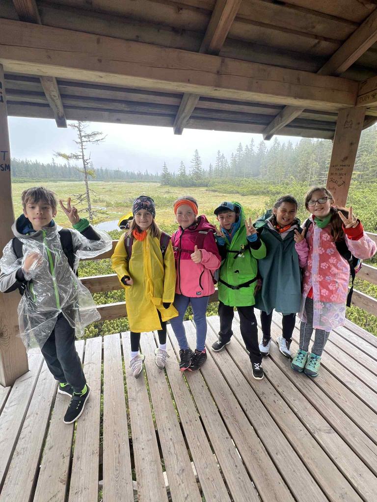 Po poledním klidu nás čekal poslední výšlap – výprava na Černou horu. I když nás po cestě zastihl déšť a trochu jsme zmokli, nikdo z nás se nevzdal. Odměnou nám byla nejen radost z překonané trasy, ale i krásné výhledy a návštěva černohorských rašelinišť, která nás zaujala svou jedinečností. Dohromady jsme dnes ušli přes 9 kilometrů, což si zasloužilo pořádnou večeři – hranolky s kuřecím plátkem nám po túře chutnaly dvojnásob.
