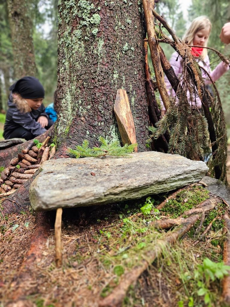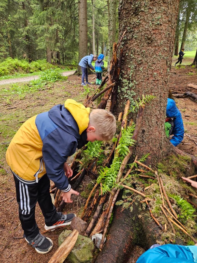 Nudu jsme si ale rozhodně nepřipustili – pletli jsme náramky z gumiček, vybarvovali omalovánky, hráli různé společenské hry a povídali si s kamarády. Než přišel čas oběda, vyrazili jsme na chvíli do blízkého lesa, kde jsme stavěli domečky z přírodních materiálů a užívali si čerstvého vzduchu.