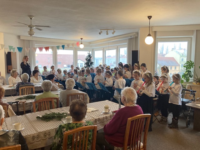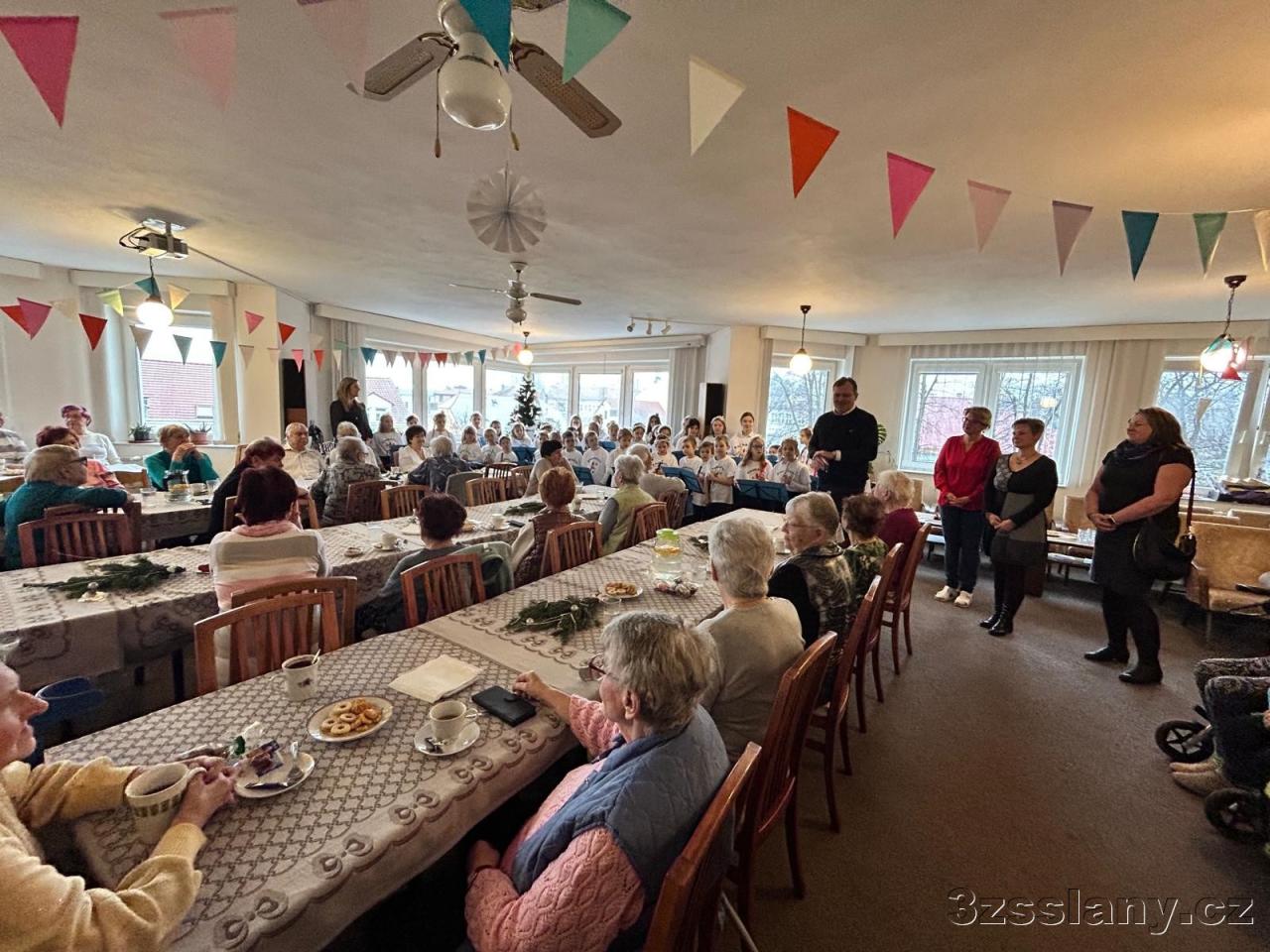 11.12. přišli Foukáčci a Světlušky potěšit seniory v DPS Na Sadech ve Slaném cyklem vánočních koled a písní. Zazněly koledy nové, ale i známé, při kterých si senioři společně s dětmi zazpívali. Navodila se tak krásná atmosféra Vánoc, která potěšila všechny přítomné v sále.