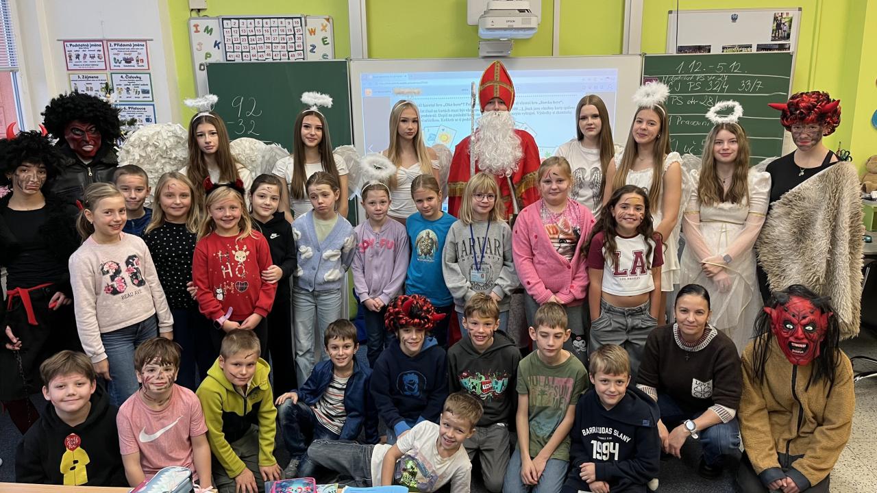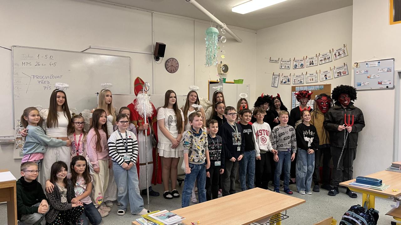 Dne 5. prosince proběhla na naší škole tradiční mikulášská nadílka, na kterou se každoročně těší mladší i starší žáci. Letos se do role Mikuláše, čertů a andělů opět s nadšením pustili žáci 9. tříd, kteří navštívili třídy napříč celou školou.