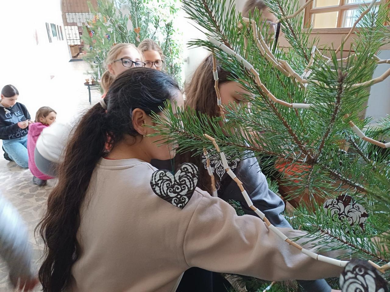 Se zdobením stromečku v knihovně pomohli vybraní žáci tříd 5.B a 5.C, kteří se úkolu ujali s velkou pečlivostí a kreativitou.