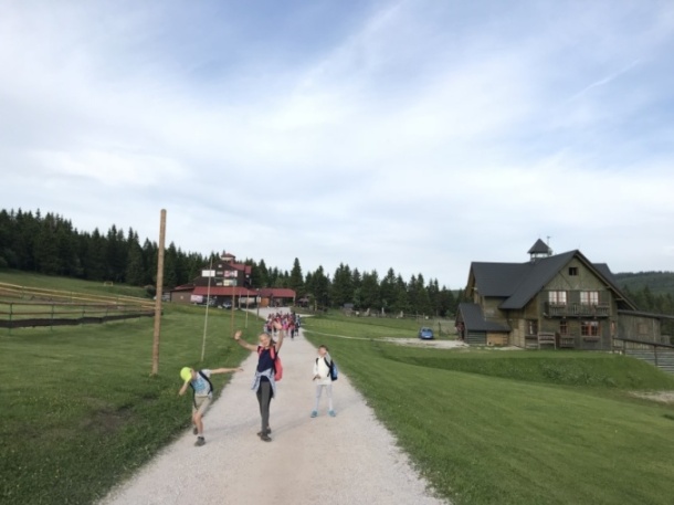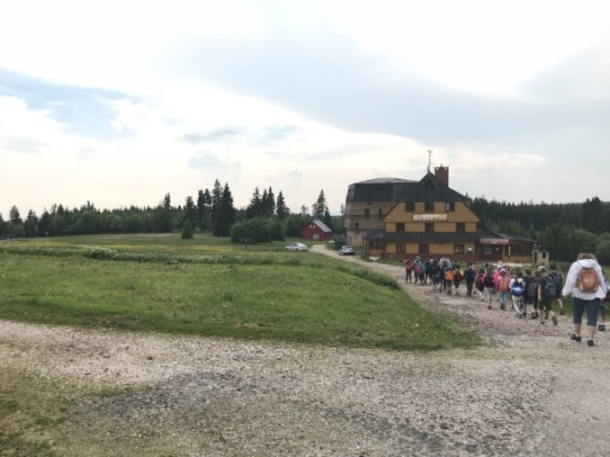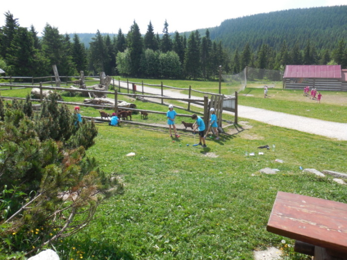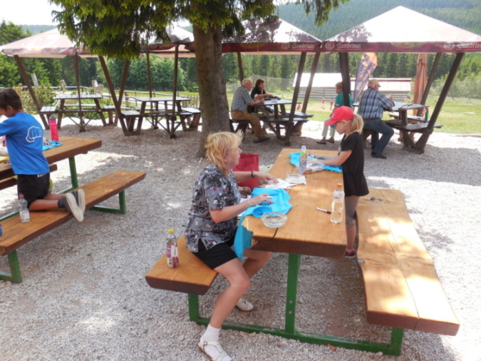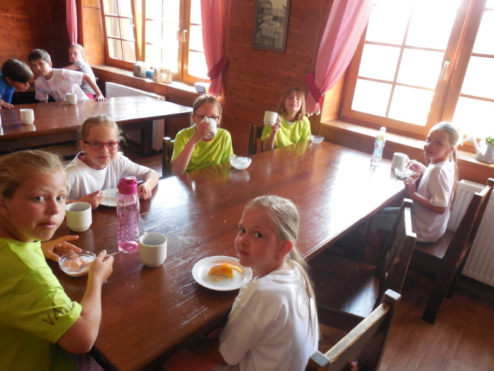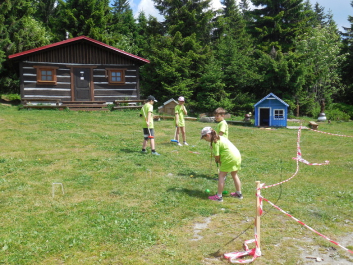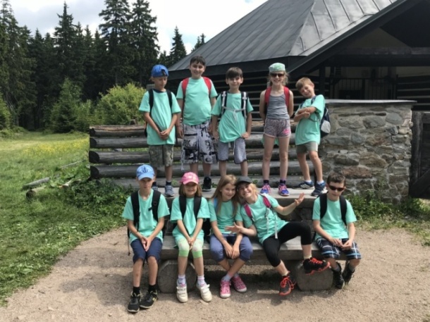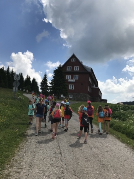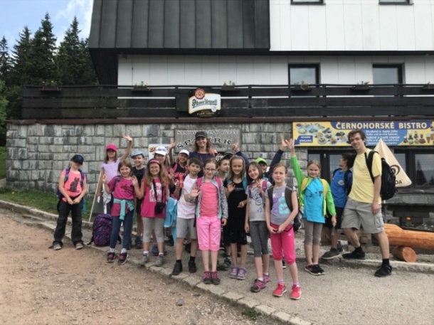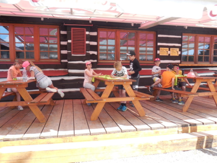 I dnes krásně slunce svítí, nám se nechce v chatě býti. Do družstev se rozdělíme, různé úkoly plníme. Zpěv s kytarou, to je hračka, další děti zdobí trička. Nehrajeme na honěnou, ale pravou vybíjenou. Po obědě vyrážíme, Černou horu zdoláváme. Všichni pěkně šlapeme, čerstvý vzdoušek dýcháme. A večerní sportování překazilo hromování. Padá kapka za kapkou, tak sedíme nad mapkou. Pohádku si pustíme, lehneme a hned spíme.