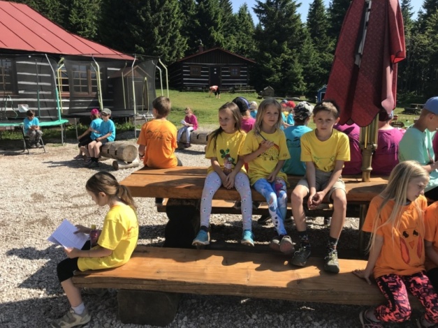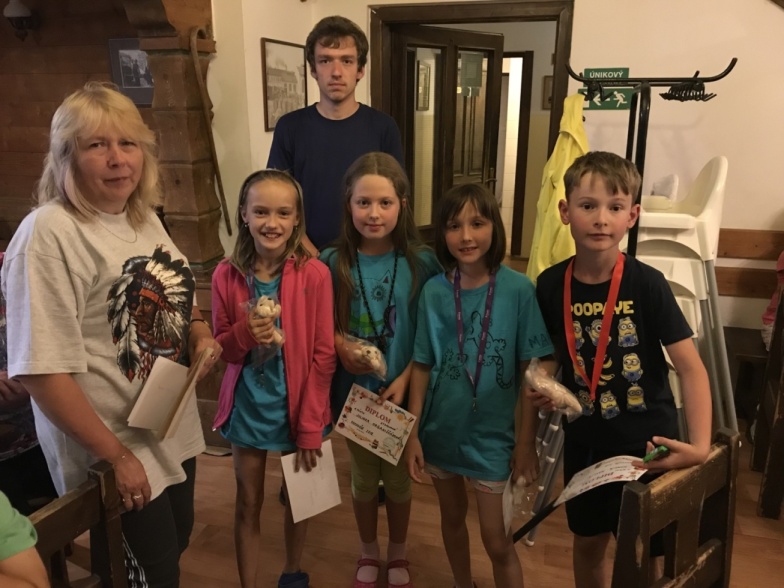 Dneska svátek máme, do hraní se dáme. Ve skupinkách poběžíme, do lesa se vydáme. Hledáme lístečky schované, pokyny čteme a plníme. Odpoledne nákupy nebo tajné výlety. A večerní překvapení - diplomy a ocenění. Den dětí se vydařil, každého z nás potěšil. báseň: Věra Borovcová foto: kdo stíhá Vše společná práce :-)