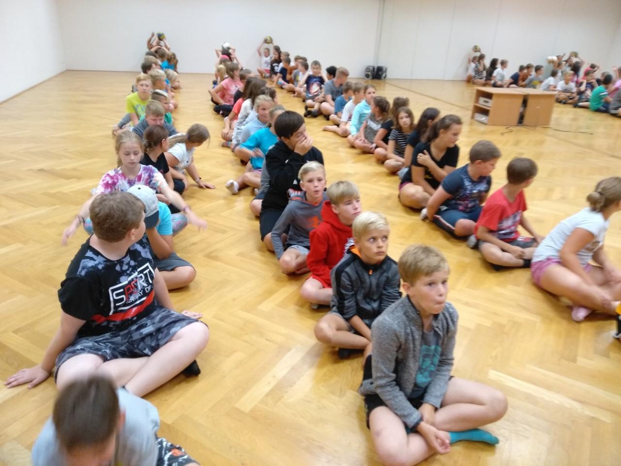 Dne 4.9. odjelo na adaptační kurz do Staré Živohošti 70 žáků z 6. ročníků. Cílem tohoto třídenního kurzu bylo seznámit se s novými třídními učiteli, stmelit třídní kolektiv, zasportovat si a užít si pár společných chvil plných zábavy ještě před začátkem školního roku. Počasí nám přálo, což jsme ocenili především první den, kdy jsme se, po splnění povinných třídnických záležitostí, s chutí vrhli společně do bazénu a využili asi už poslední šanci na koupání. Ve stejný den jsme také zahájili turnaj v přehazované a k večeru ještě strávili hodinu hraním bowlingu. Před večerkou jsme si užili trochu kolektivní zábavy v tělocvičně. Druhý den nám počasí opět přálo, dopoledne bylo plné sluníčka, a tak jsme opět sportovali, tvořili třídní pravidla a navrhovali třídní erb. Po obědě jsme se vydali na krátkou procházku do okolí a večer po večeři nás ještě čekal táborák, kytara a opékání buřtíků. Pátek byl předposlední dnem našeho kurzu, a proto nás dopoledne čekaly finálové souboje v přehazované a další zábavné úkoly. Po obědě jsme se vydali na krátký výlet na Drtinovu rozhlednu, kam jsem ovšem nedošli, jelikož nám cestu zkřížily krvelačné sršní bestie - šest z nás si od nich bohužel odneslo pořádný bodanec. Situace vypadala velmi dramaticky, a proto jsme se obratem vrátili na základnu a vyhledali ošetření. Zdravotní setra měla hodně práce, ale vše dopadlo dobře a nikdo neměl následky. Takže jsme si nakonec i poslední večer užili spoustu legrace u scének, které jsme si pro sebe navzájem připravili. Večer už nás čekalo závěrečné zhodnocení kurzu a ocenění vítězů i poražených. Pak nezbývalo, než zabalit kufry a v sobotu po snídani vyrazit k domovům.