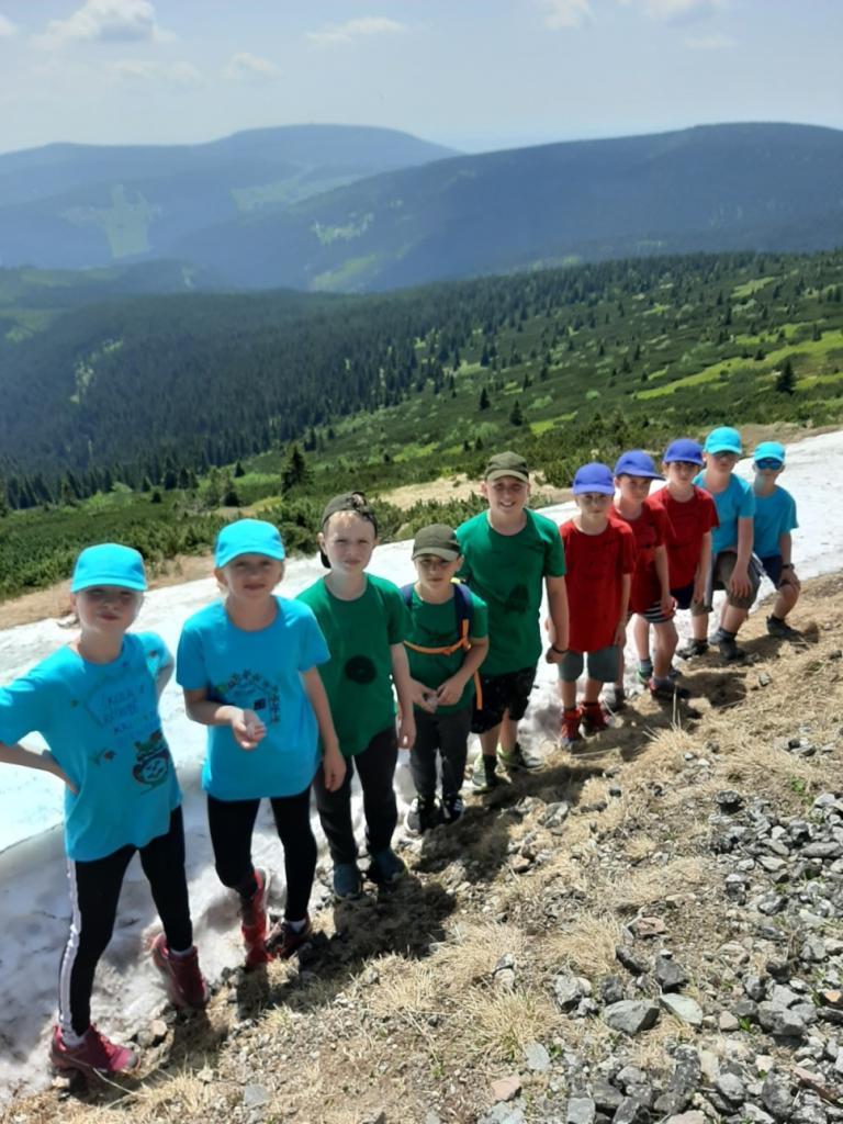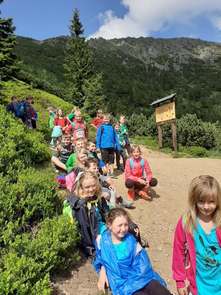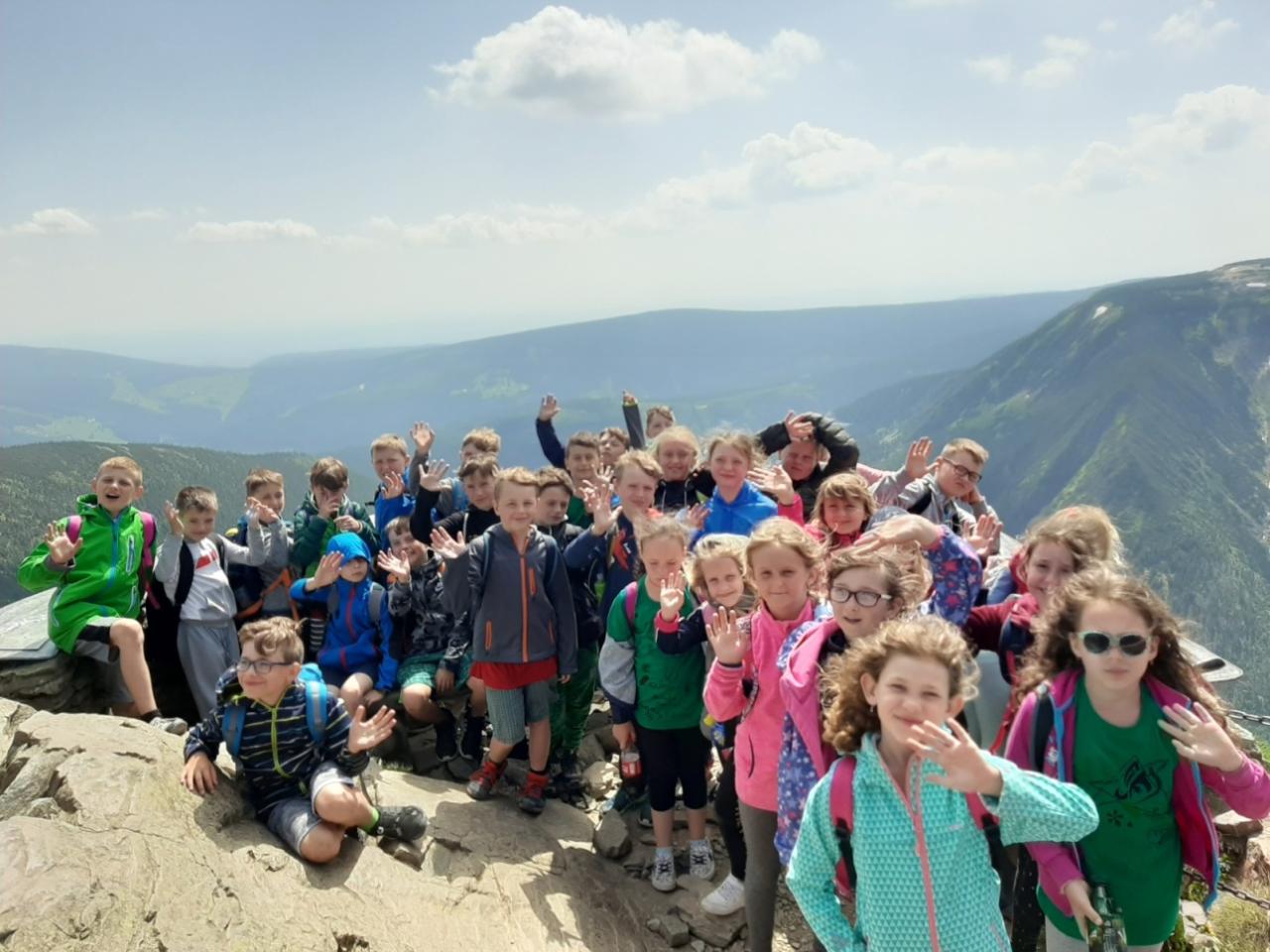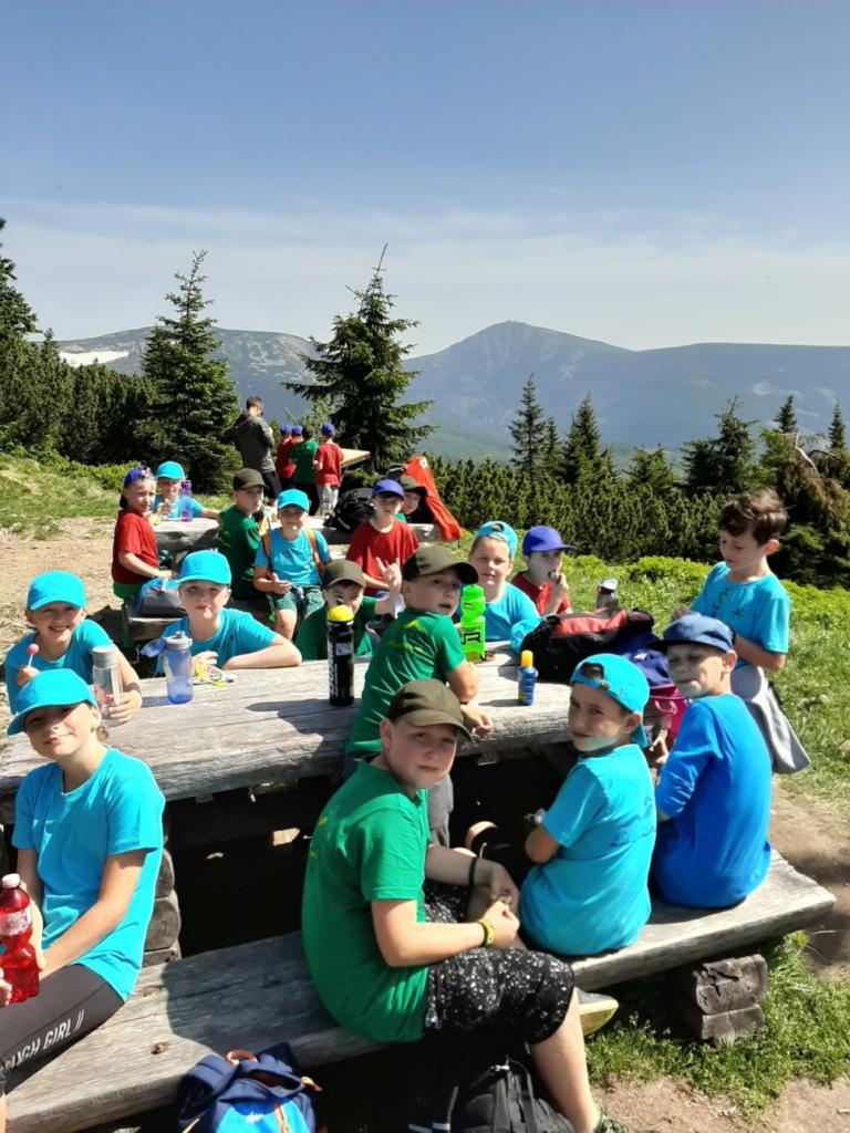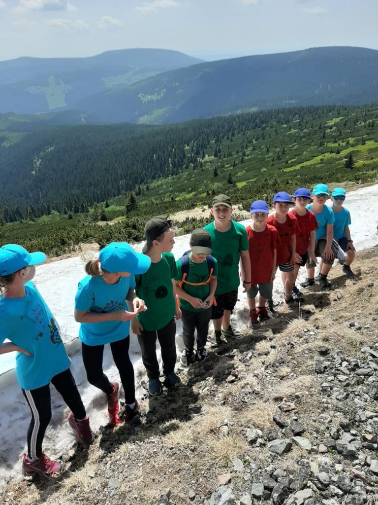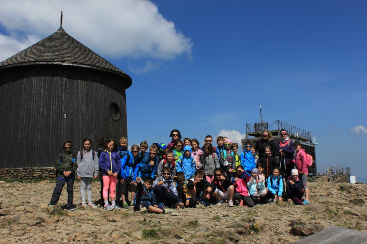 Snídaně zas dobrá byla, všechny pěkně posílila. Levá, pravá jdeme hned, cíl nás nutí jíti vpřed. Lyžařskou už míjíme, kopec před námi však stále je. Na vyhlídce, to je krása, srdce Čecha nad tím jásá. Sněžku v dáli vidím hned, posvačím a chytím dech. Výrovka a bouda Luční, kdopak nám to vzadu hluční? Kráčíme si pospolu k slunečnímu vrcholu. Na Sněžce se fotit musí, máme na to doklady, ať pak nejsou dohady. Sněžka zdolána 12.6. 2019