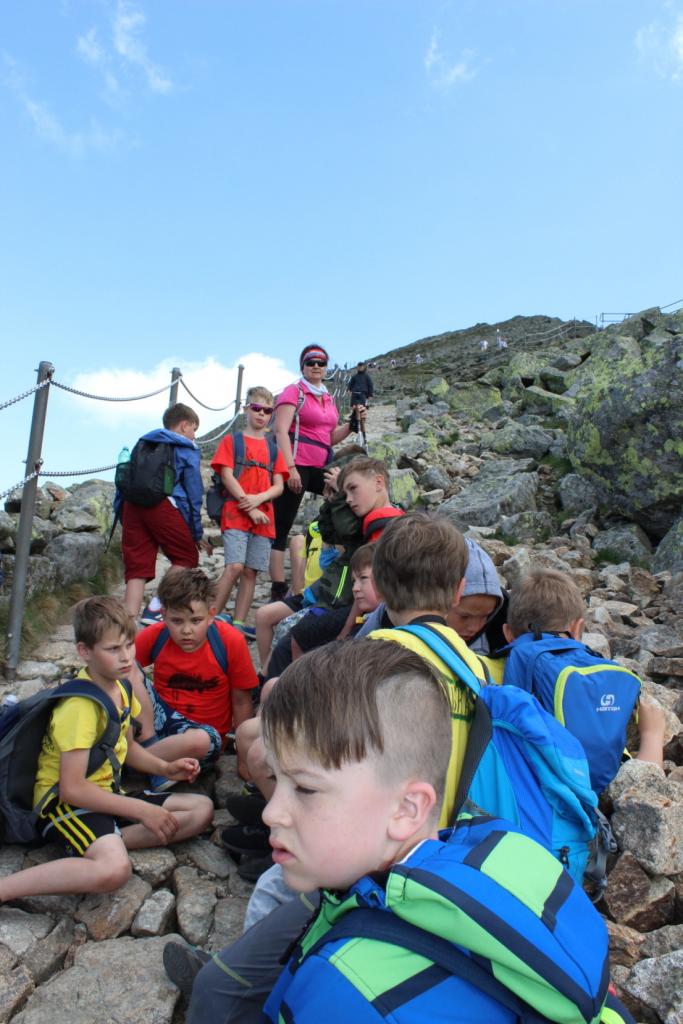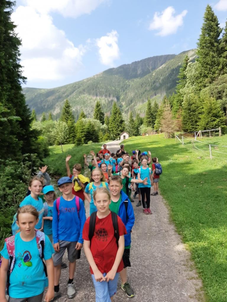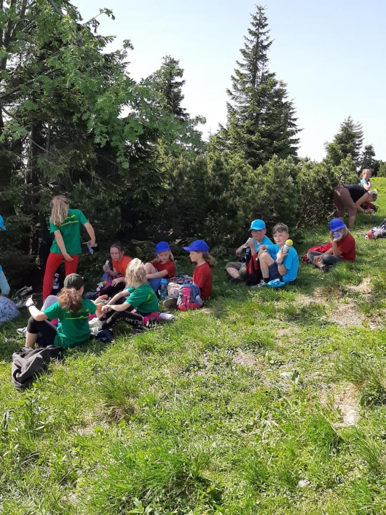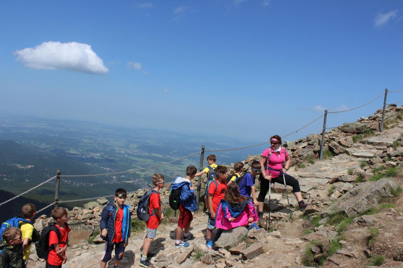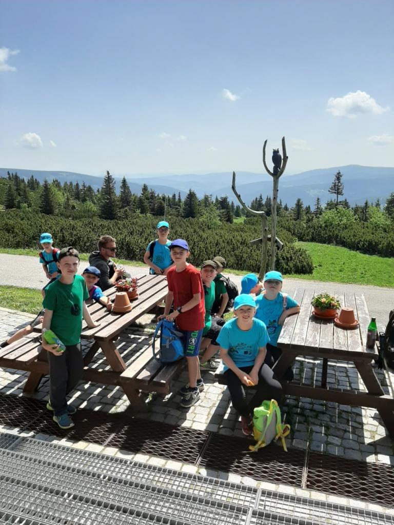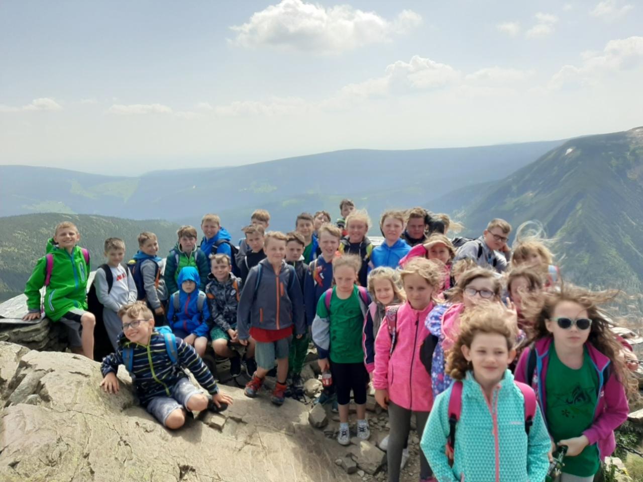 Snídaně zas dobrá byla, všechny pěkně posílila. Levá, pravá jdeme hned, cíl nás nutí jíti vpřed. Lyžařskou už míjíme, kopec před námi však stále je. Na vyhlídce, to je krása, srdce Čecha nad tím jásá. Sněžku v dáli vidím hned, posvačím a chytím dech. Výrovka a bouda Luční, kdopak nám to vzadu hluční? Kráčíme si pospolu k slunečnímu vrcholu. Na Sněžce se fotit musí, máme na to doklady, ať pak nejsou dohady. Sněžka zdolána 12.6. 2019