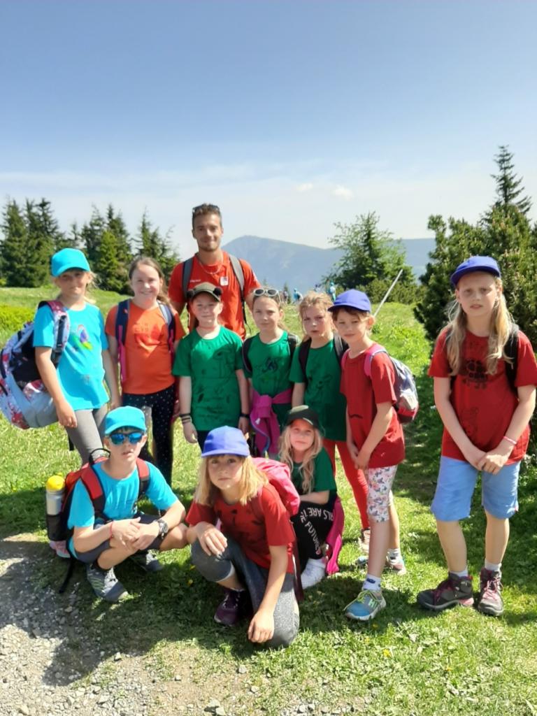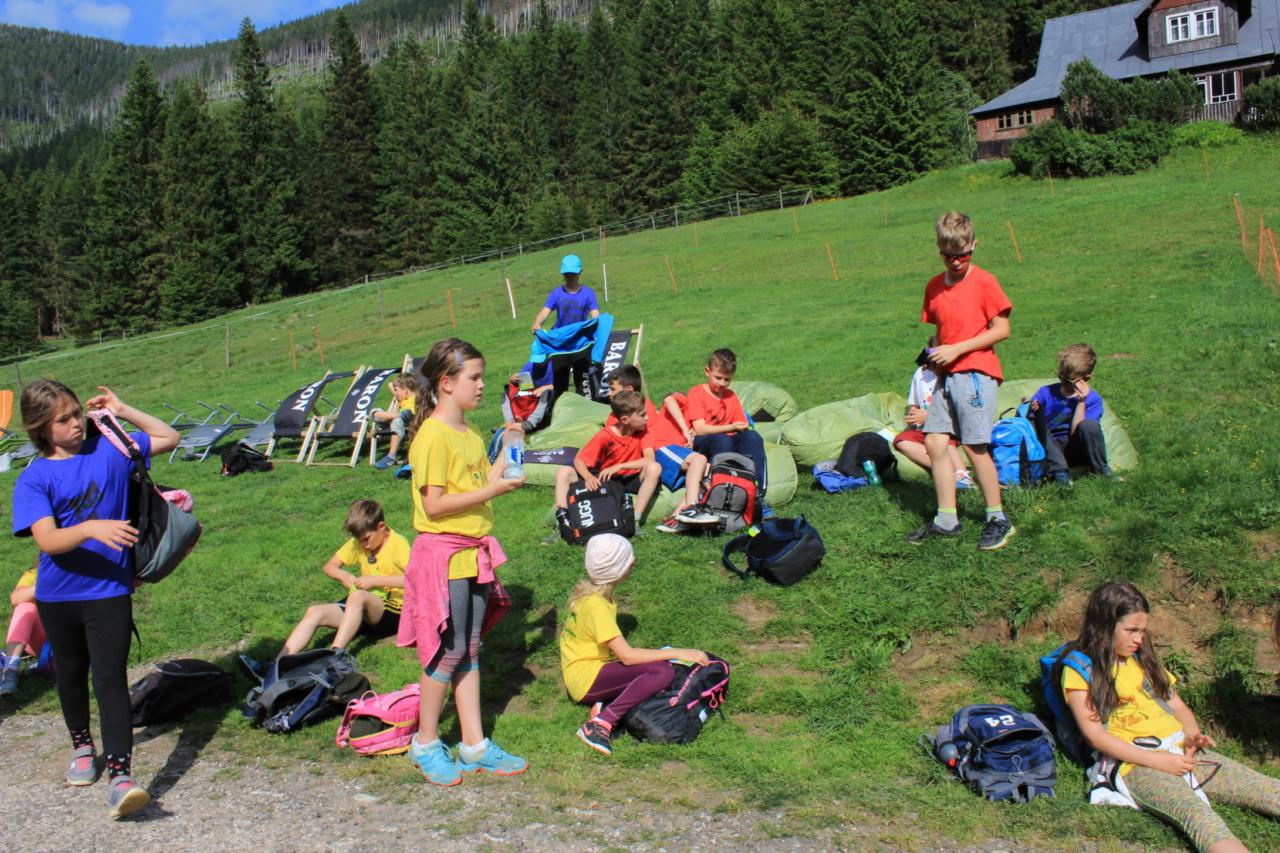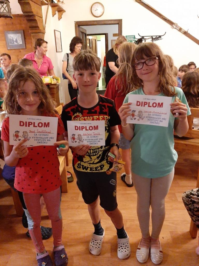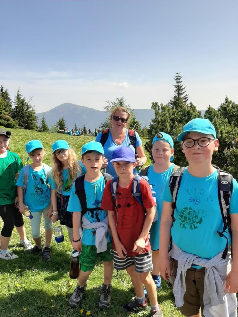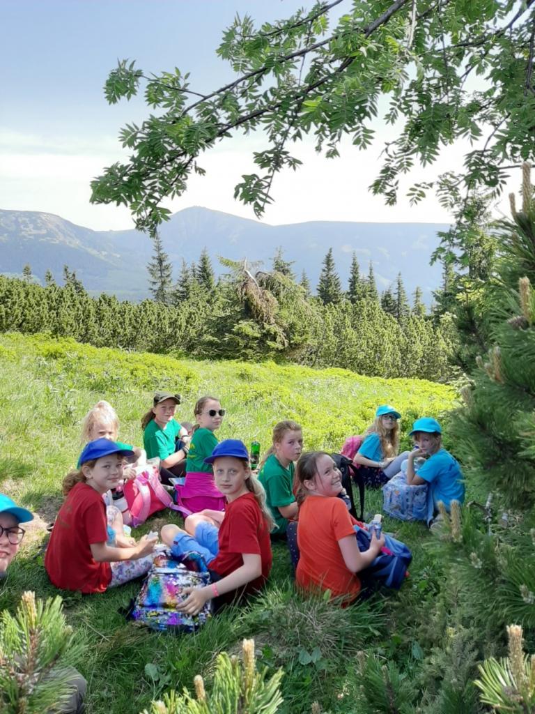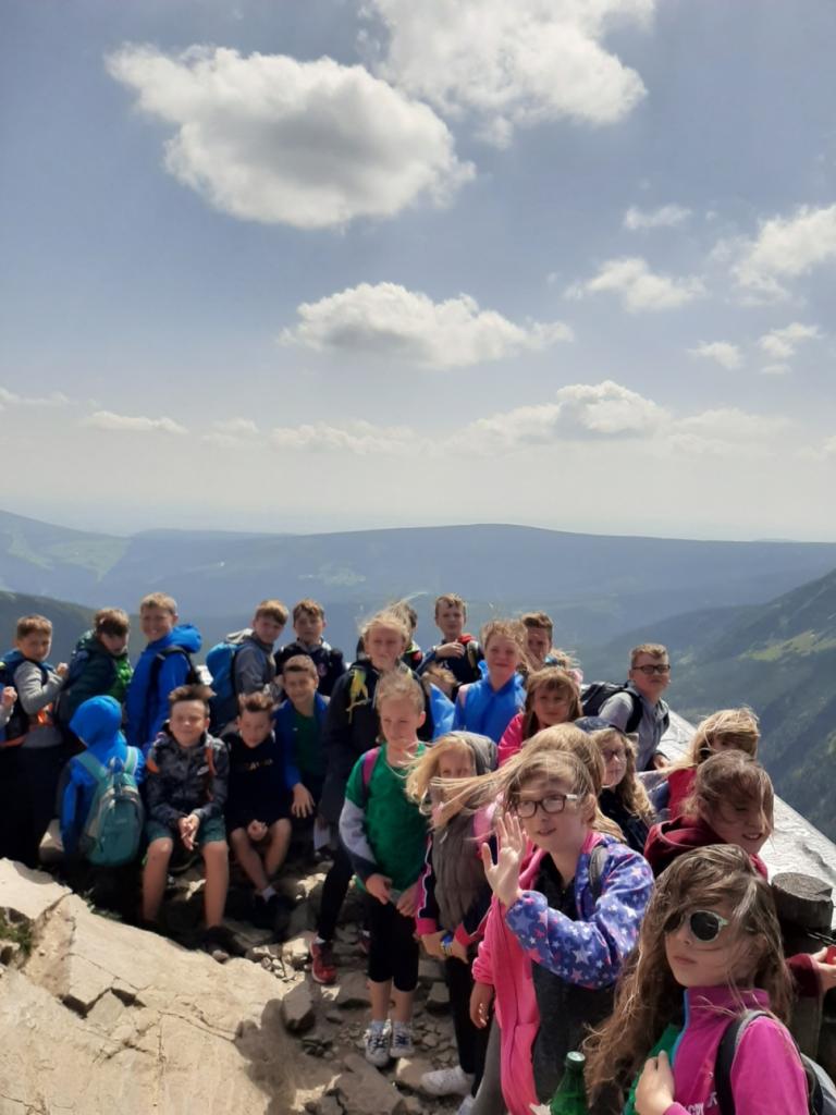 Snídaně zas dobrá byla, všechny pěkně posílila. Levá, pravá jdeme hned, cíl nás nutí jíti vpřed. Lyžařskou už míjíme, kopec před námi však stále je. Na vyhlídce, to je krása, srdce Čecha nad tím jásá. Sněžku v dáli vidím hned, posvačím a chytím dech. Výrovka a bouda Luční, kdopak nám to vzadu hluční? Kráčíme si pospolu k slunečnímu vrcholu. Na Sněžce se fotit musí, máme na to doklady, ať pak nejsou dohady. Sněžka zdolána 12.6. 2019