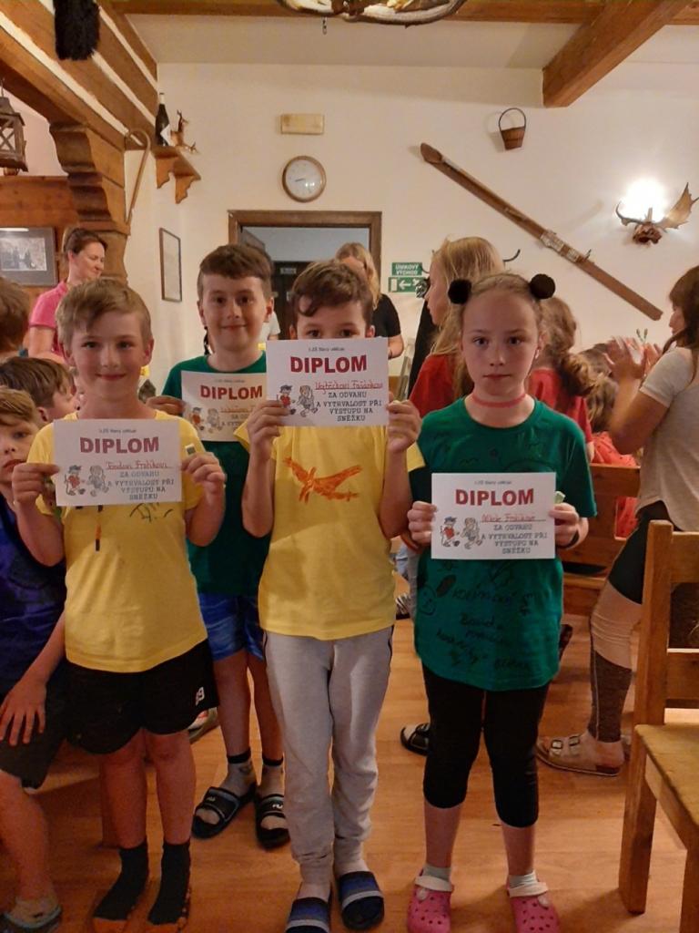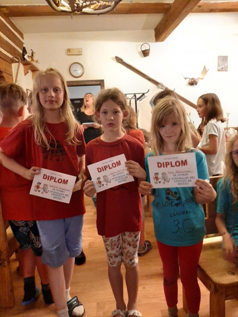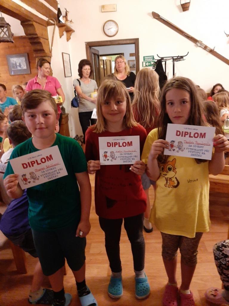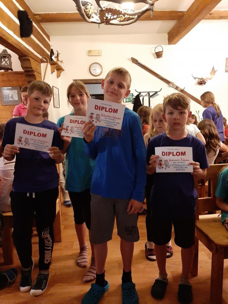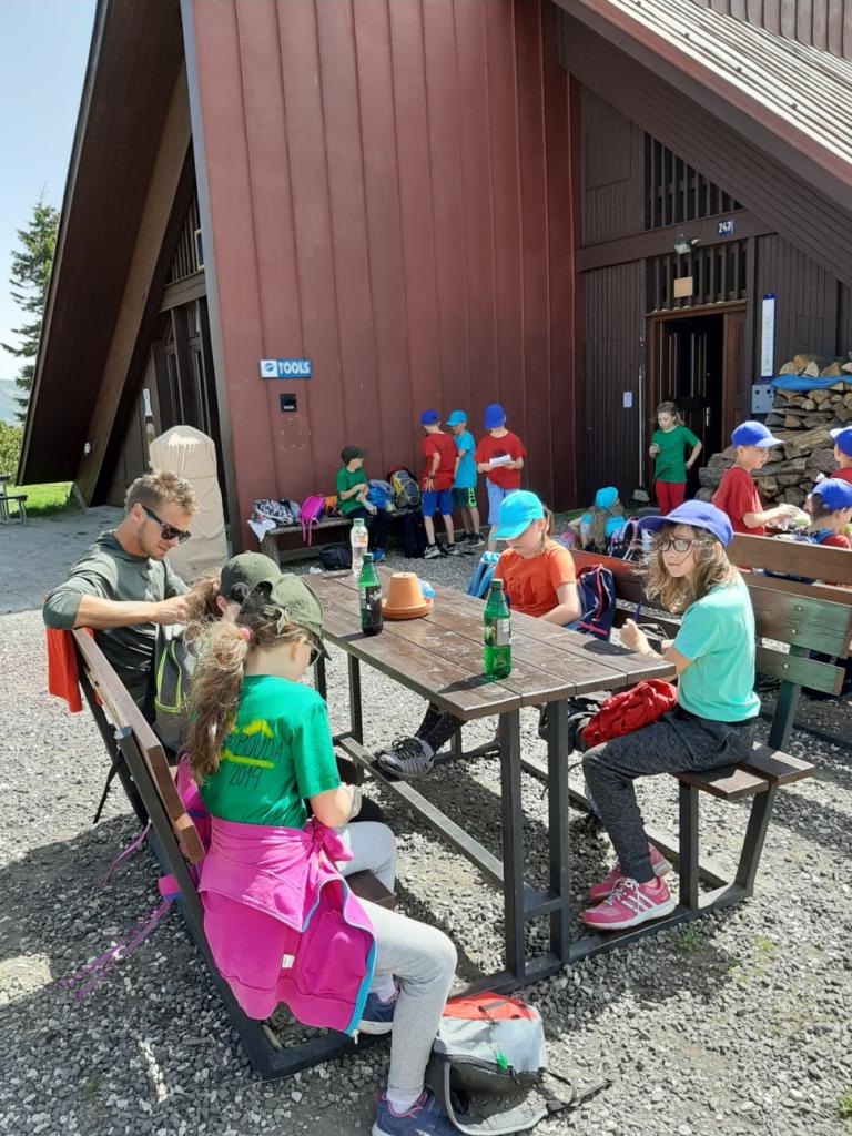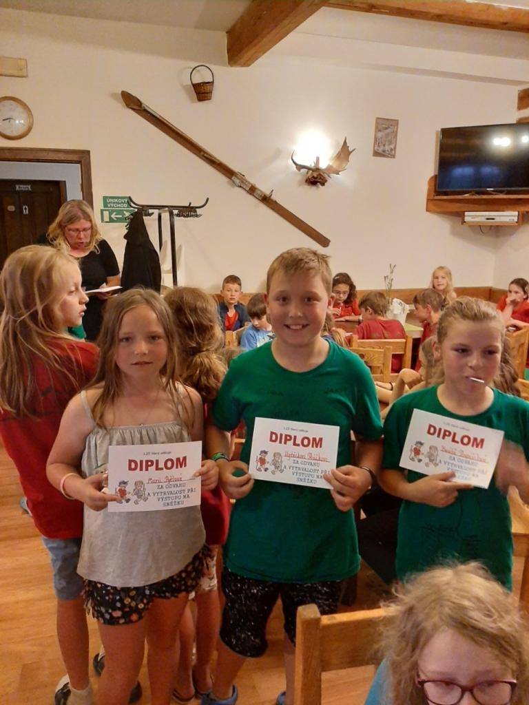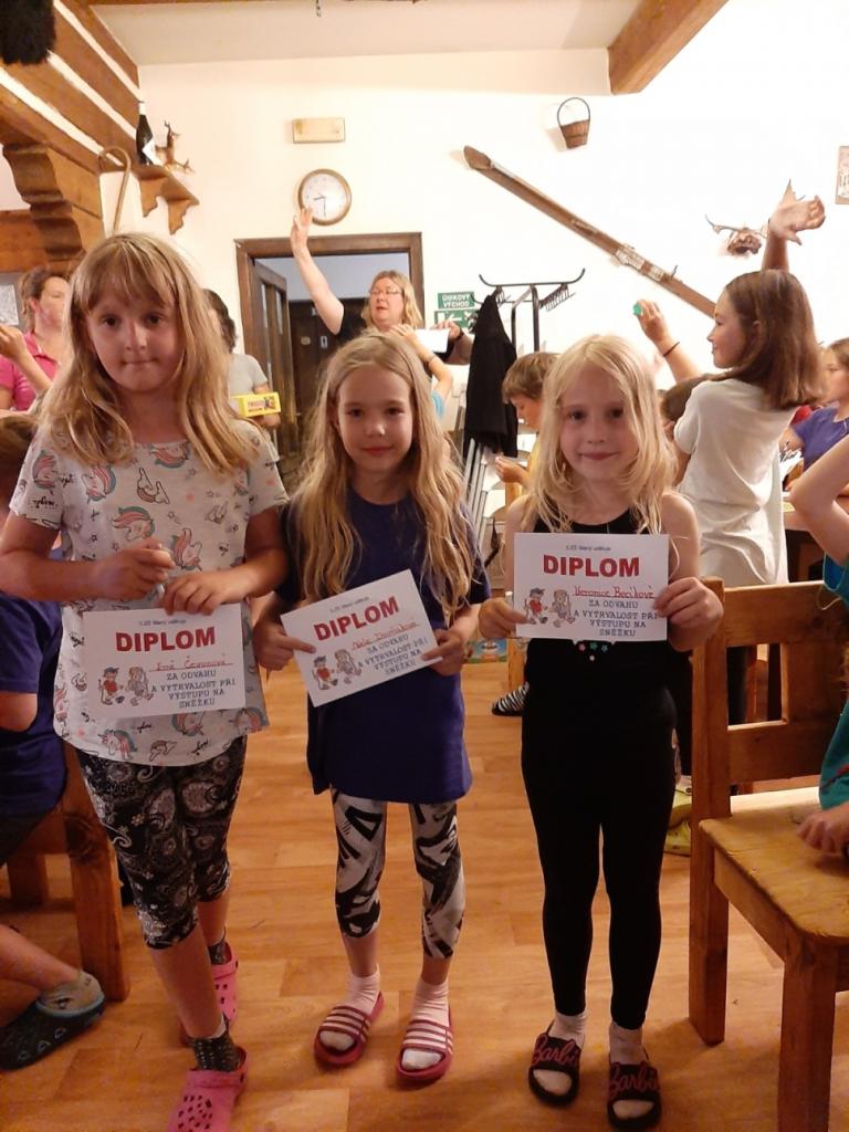 Snídaně zas dobrá byla, všechny pěkně posílila. Levá, pravá jdeme hned, cíl nás nutí jíti vpřed. Lyžařskou už míjíme, kopec před námi však stále je. Na vyhlídce, to je krása, srdce Čecha nad tím jásá. Sněžku v dáli vidím hned, posvačím a chytím dech. Výrovka a bouda Luční, kdopak nám to vzadu hluční? Kráčíme si pospolu k slunečnímu vrcholu. Na Sněžce se fotit musí, máme na to doklady, ať pak nejsou dohady. Sněžka zdolána 12.6. 2019