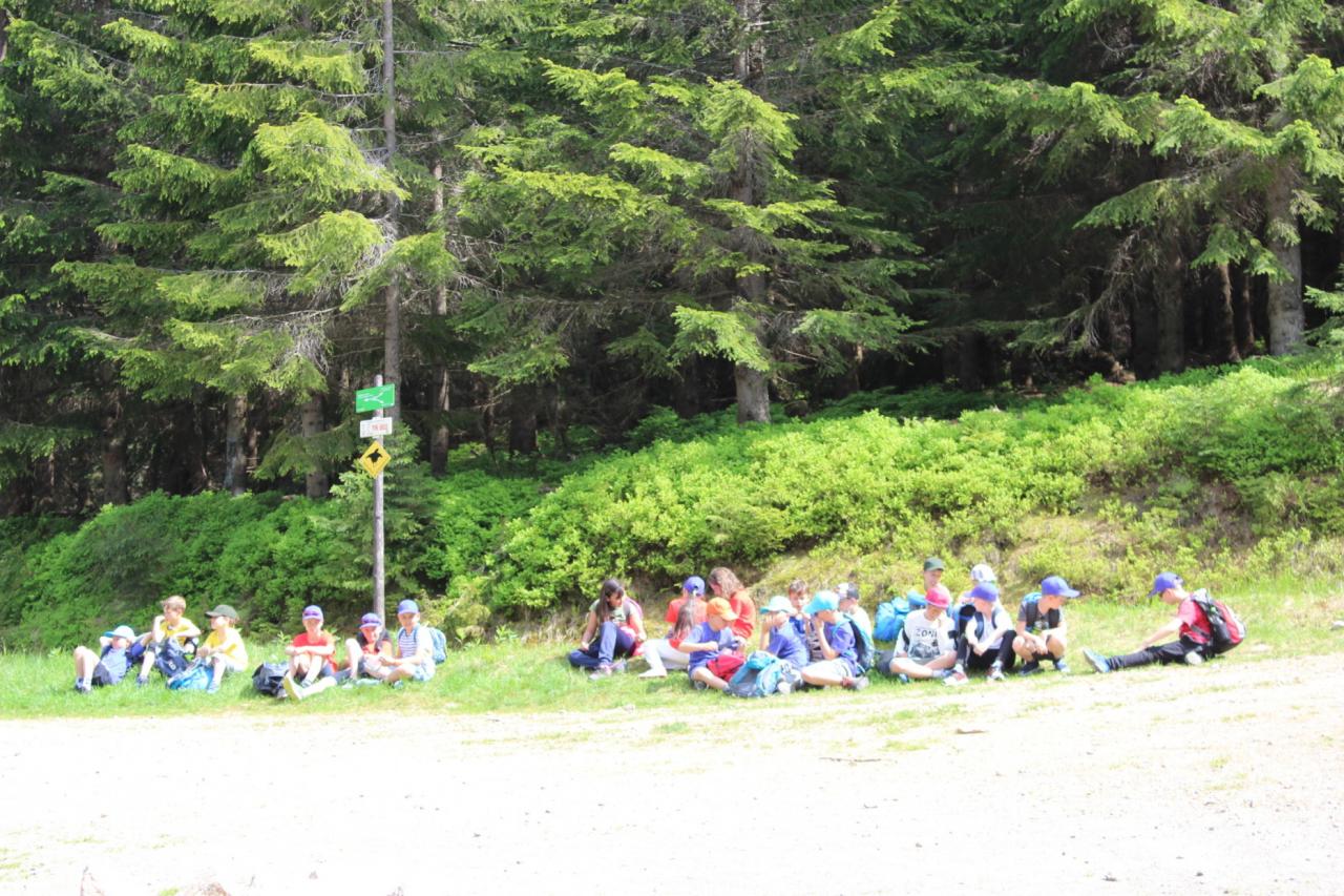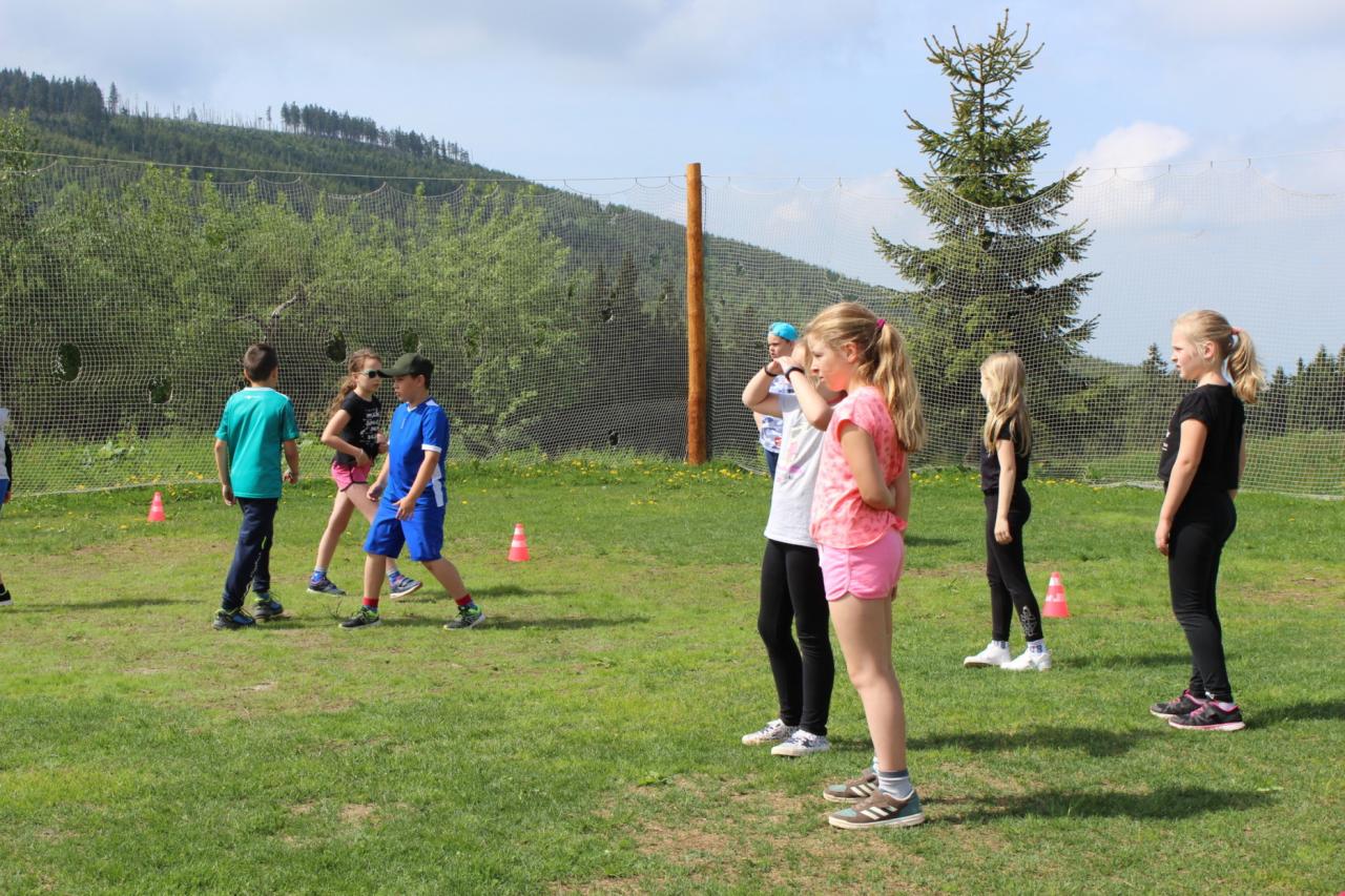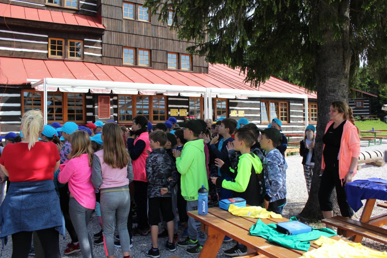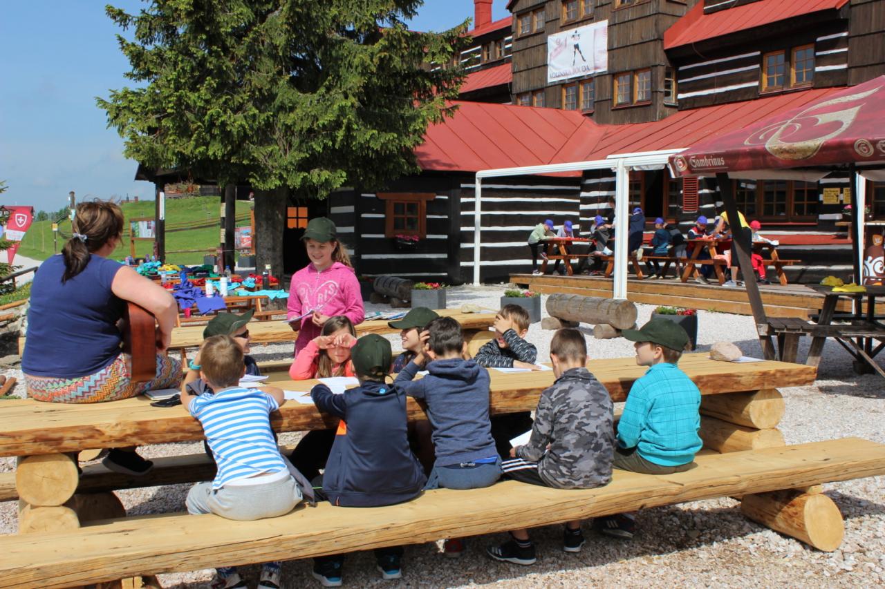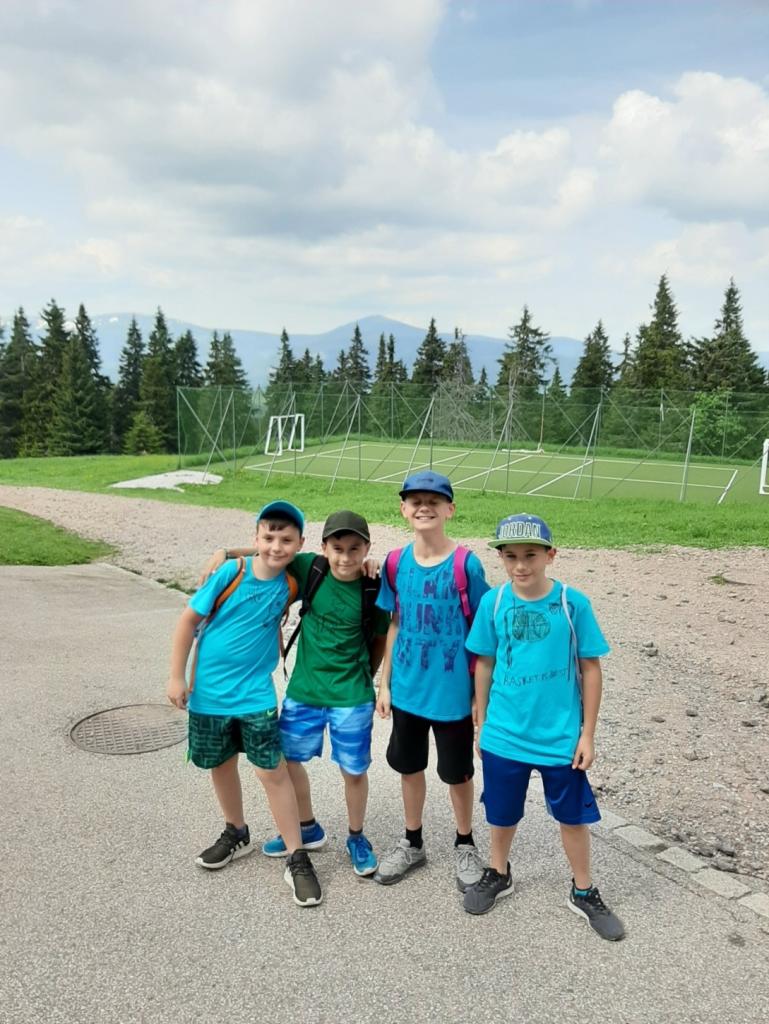 Budíček nás vstávat nutí, v koupelně už není k hnutí. Každý je pak celkem rád, že se jdeme nasnídat. Dopoledne jdeme na to, sportovat chceme celkem vzato. Deníček si budeme psát, a pak venku sportovat. Zdolali jsme Černou horu, byli jsme až na vrcholu. Sladkou odměnou nám pak byla, vanilková zmrzlina.