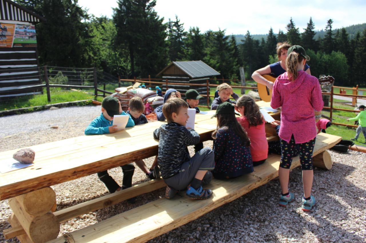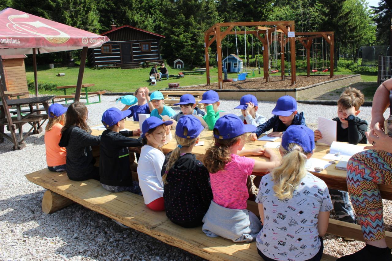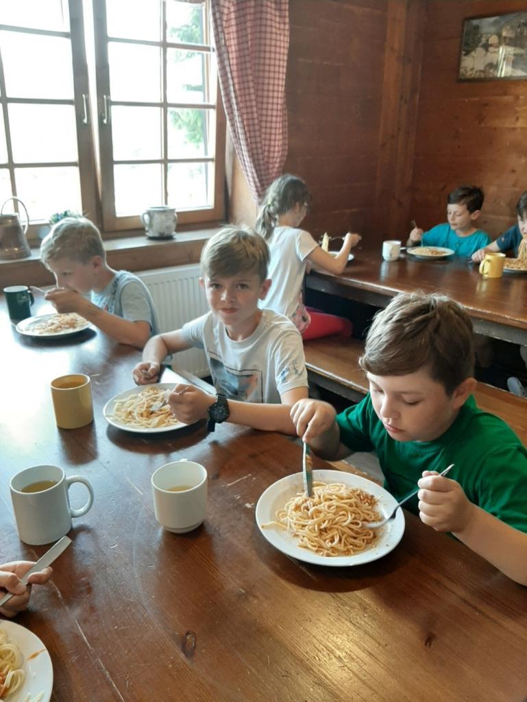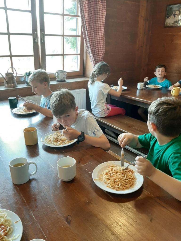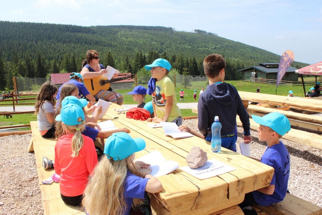 Budíček nás vstávat nutí, v koupelně už není k hnutí. Každý je pak celkem rád, že se jdeme nasnídat. Dopoledne jdeme na to, sportovat chceme celkem vzato. Deníček si budeme psát, a pak venku sportovat. Zdolali jsme Černou horu, byli jsme až na vrcholu. Sladkou odměnou nám pak byla, vanilková zmrzlina.