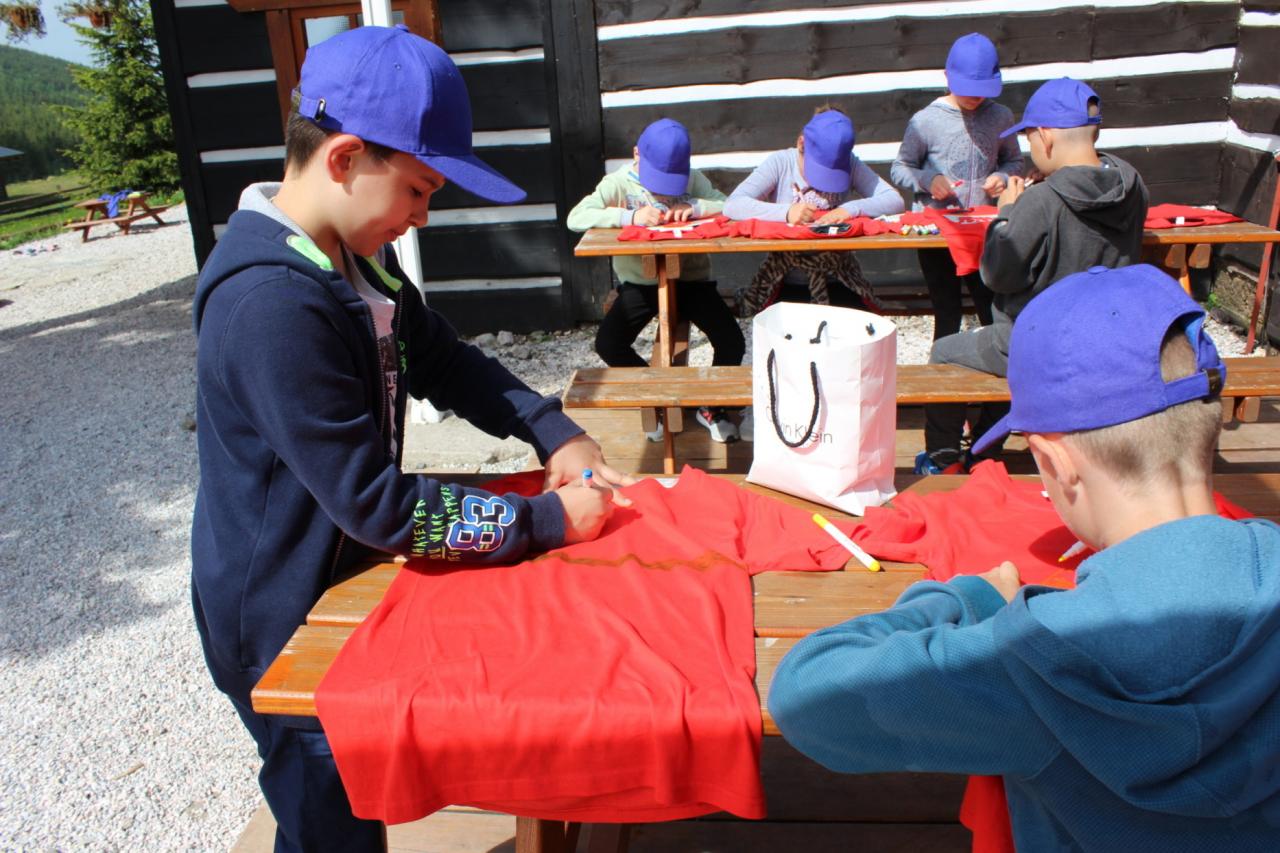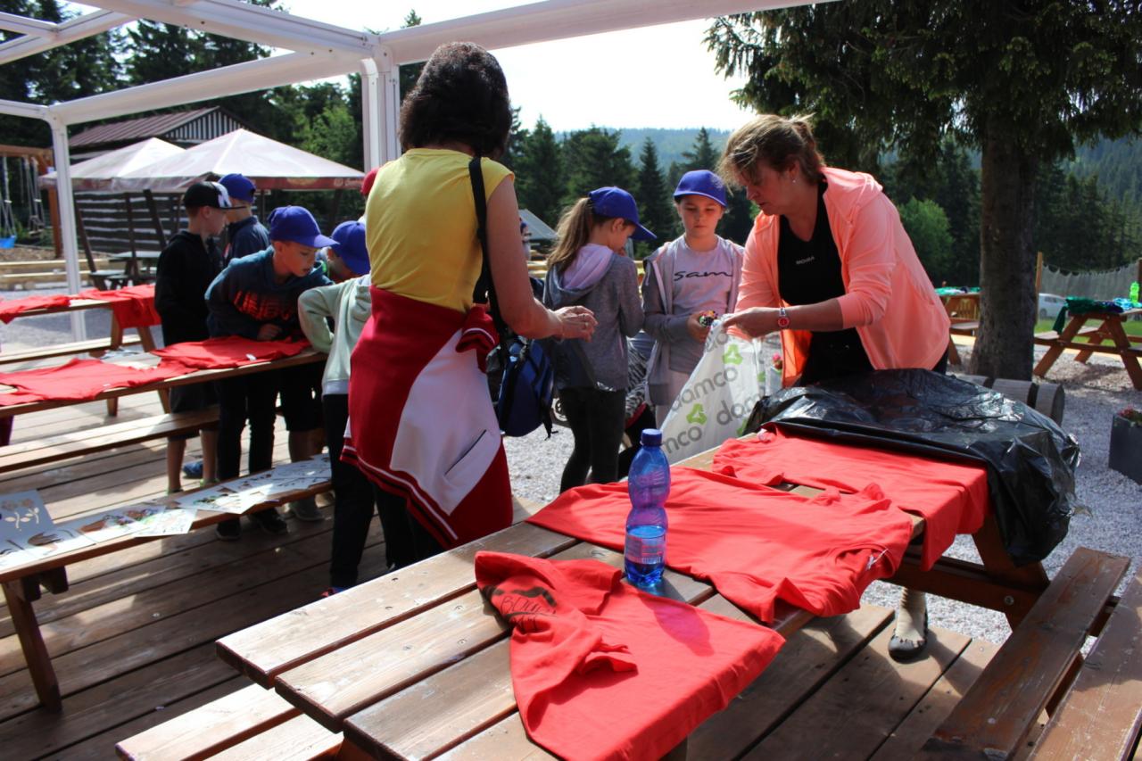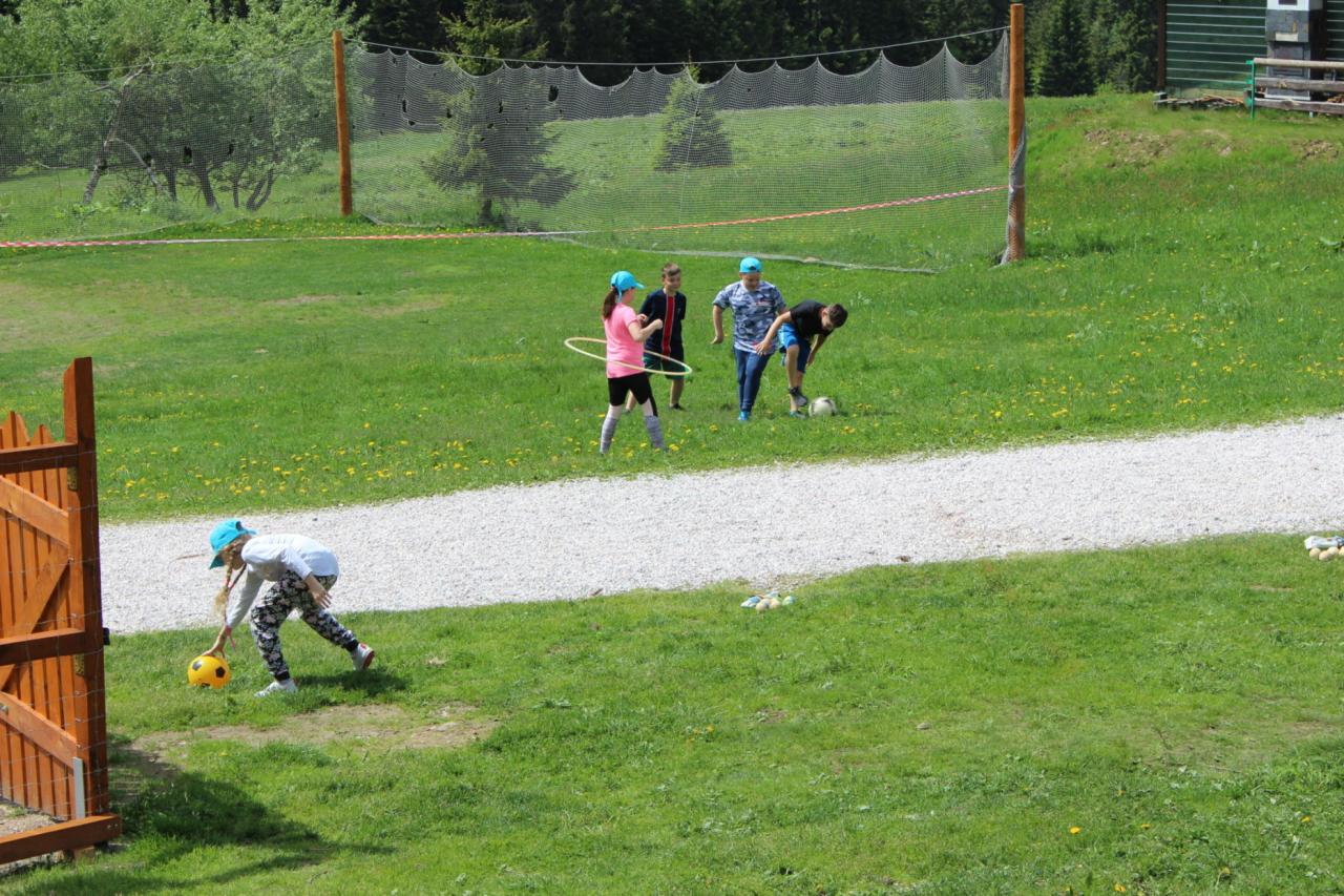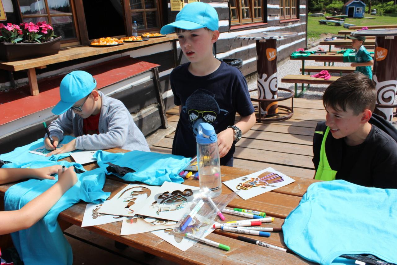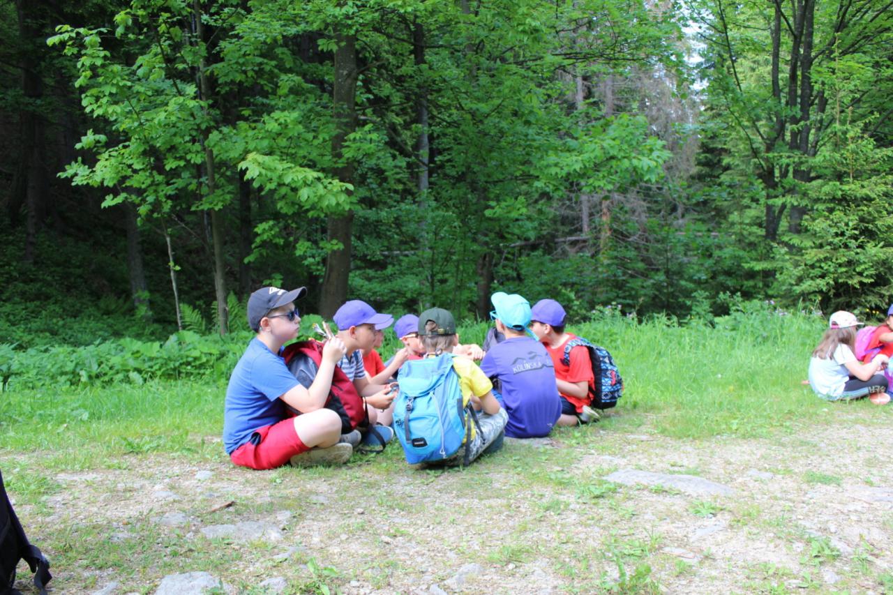 Budíček nás vstávat nutí, v koupelně už není k hnutí. Každý je pak celkem rád, že se jdeme nasnídat. Dopoledne jdeme na to, sportovat chceme celkem vzato. Deníček si budeme psát, a pak venku sportovat. Zdolali jsme Černou horu, byli jsme až na vrcholu. Sladkou odměnou nám pak byla, vanilková zmrzlina.