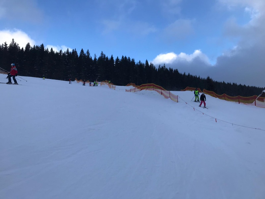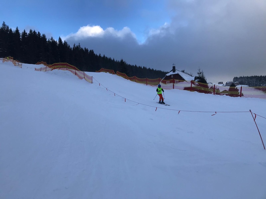 Dnes ráno počasí vypadalo slibně, a tak jsme doufali, že alespoň dnes bude svítit Slunce. Opak byl pravdou. Než jsme se nasnídali, padla taková mlha, že by se dala krájet. Takže ani dnes na nás modrá obloha nevykoukla, naopak padal déšť se sněhem. Bez ohledu na počasí musíme ale zhodnotit dnešní podmínky pro lyžování jako velmi dobré. První až třetí družstvo dnes lyžovalo na velkých sjezdovkách v Peci. Pokořili jsme Smrk, Zahrádky, Muldu aj. Čtvrté družstvo jezdilo u hotelu a odpoledne ještě absolvovalo poslední běžecký výcvik. Před večeří jsme si vyslechli přednášku o 1. pomoci a večer jsme ještě poctivě pilovali společenské tance, jelikož nás zítra čeká soutěž.