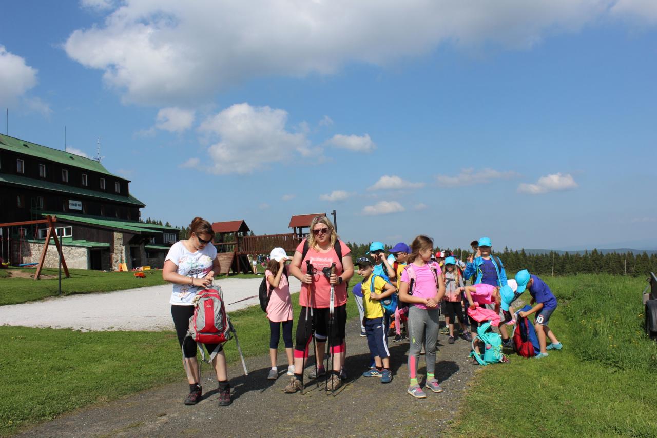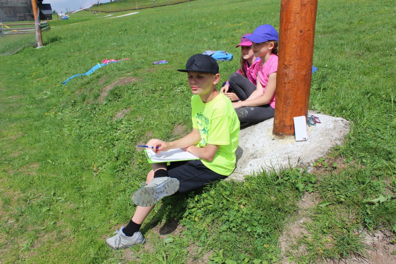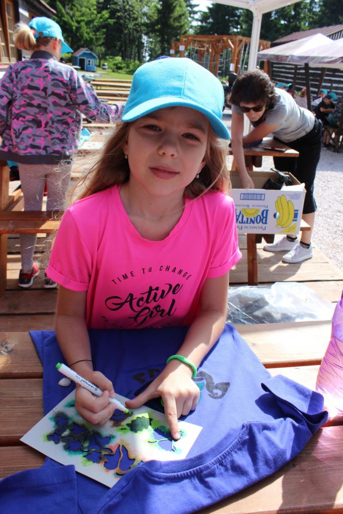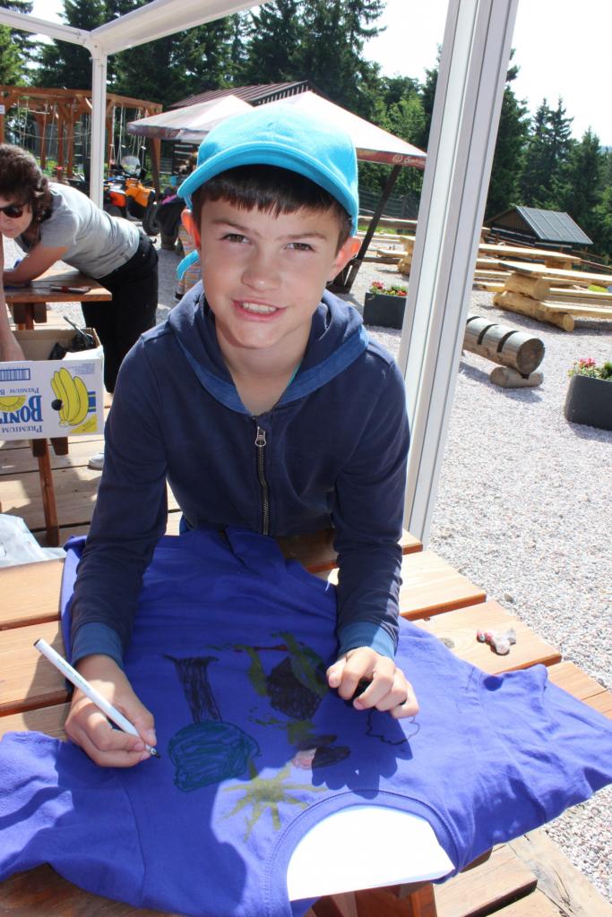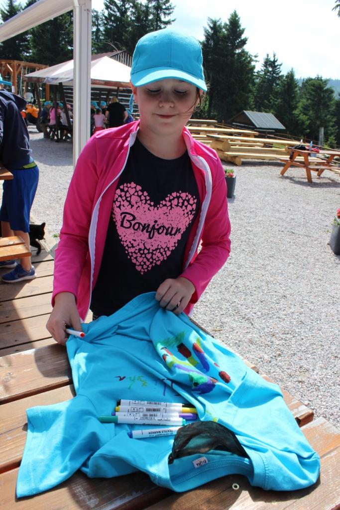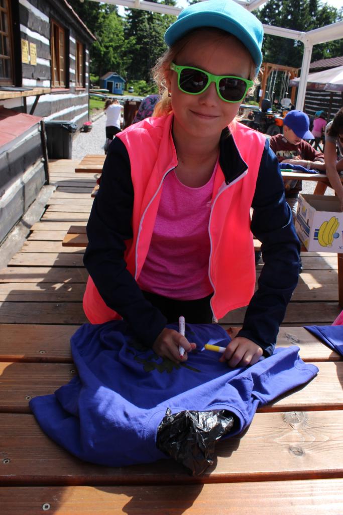 V úterý je dobrý den, vybíjenou zas hrajem. Kdo chce trochu odpočívat, může trička dokreslovat. K obědu pak kuře bylo, mile nás to překvapilo. Vycházka se zvrtla v pochod!!!! Jedna bouda, druhá, třetí, razítka tam sbíráme, zdraví vzduch tam dýcháme. A co víc si zítra přát, budem Sněžku dobývat?