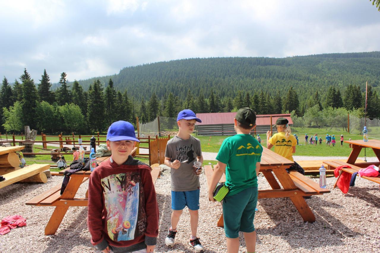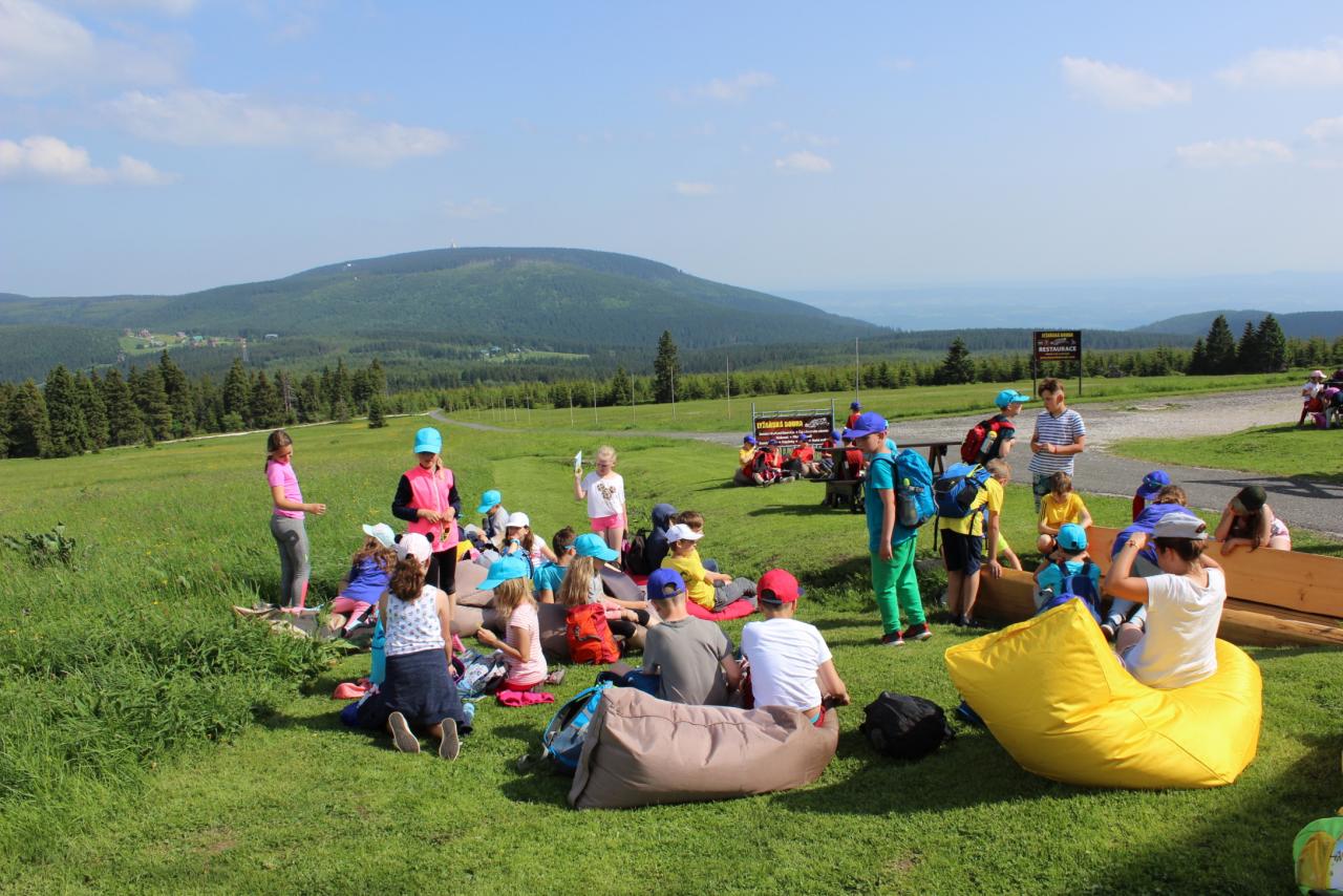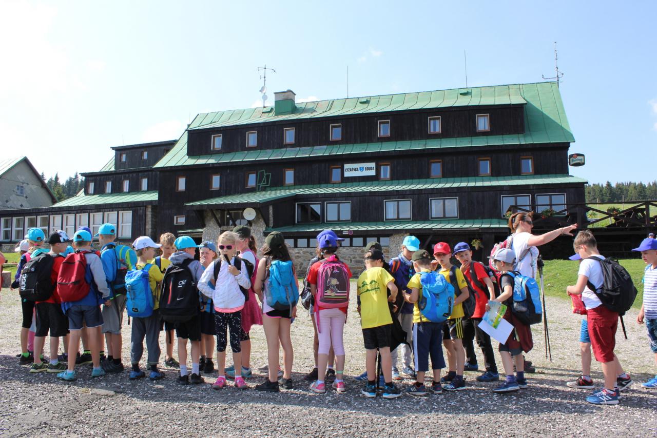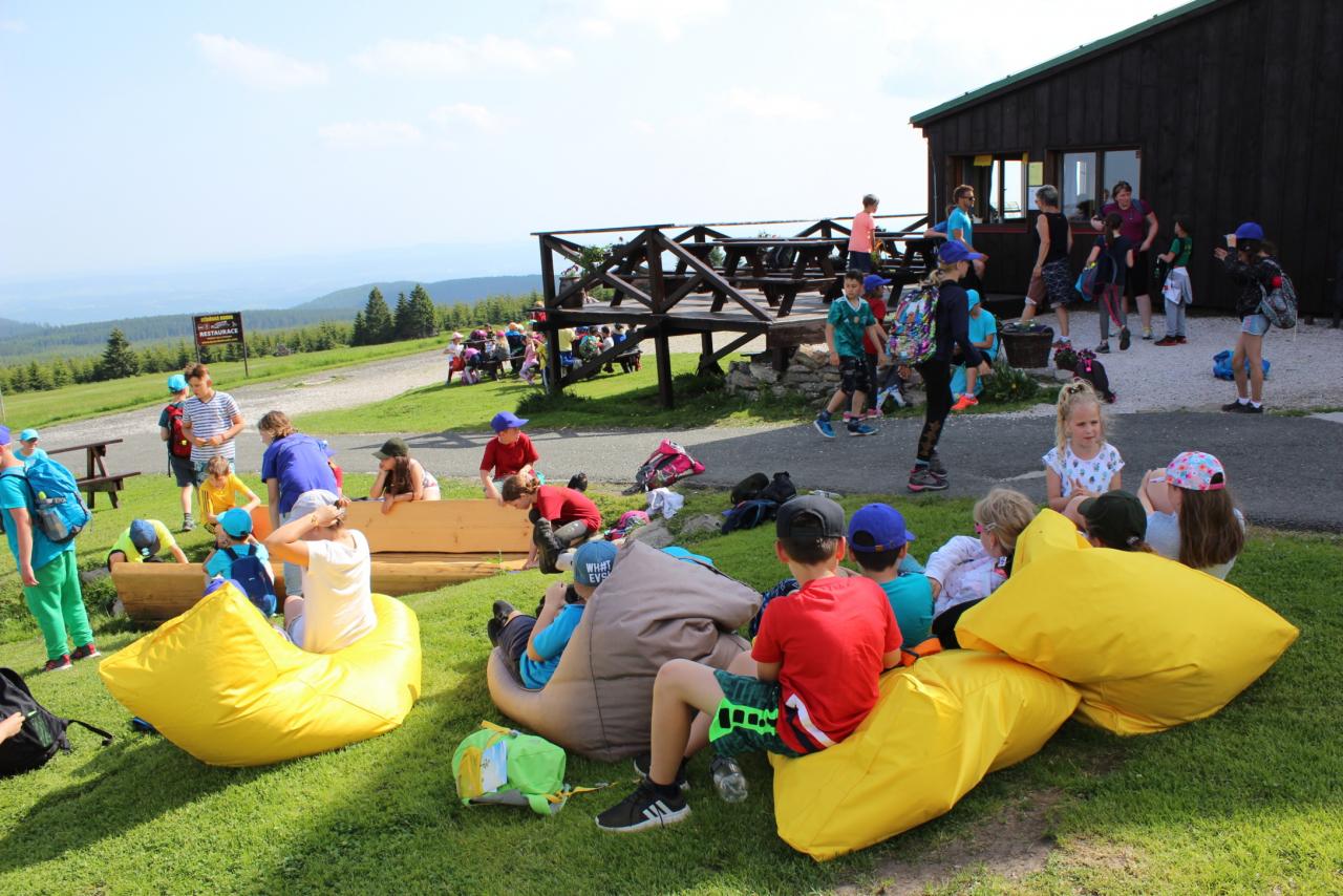 V úterý je dobrý den, vybíjenou zas hrajem. Kdo chce trochu odpočívat, může trička dokreslovat. K obědu pak kuře bylo, mile nás to překvapilo. Vycházka se zvrtla v pochod!!!! Jedna bouda, druhá, třetí, razítka tam sbíráme, zdraví vzduch tam dýcháme. A co víc si zítra přát, budem Sněžku dobývat?