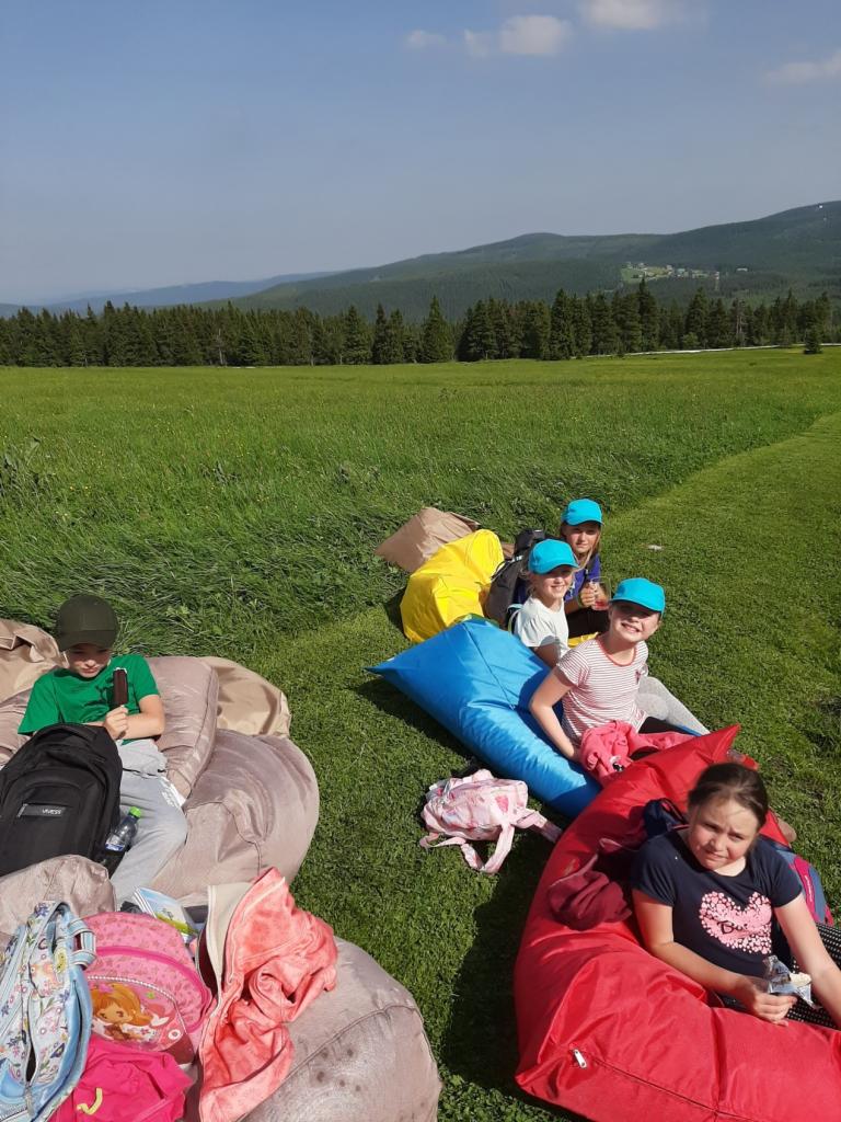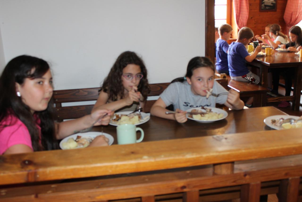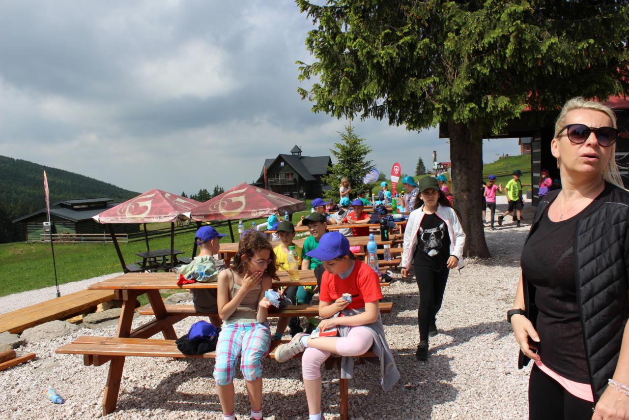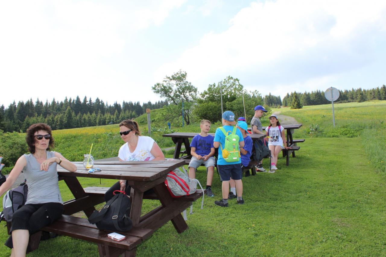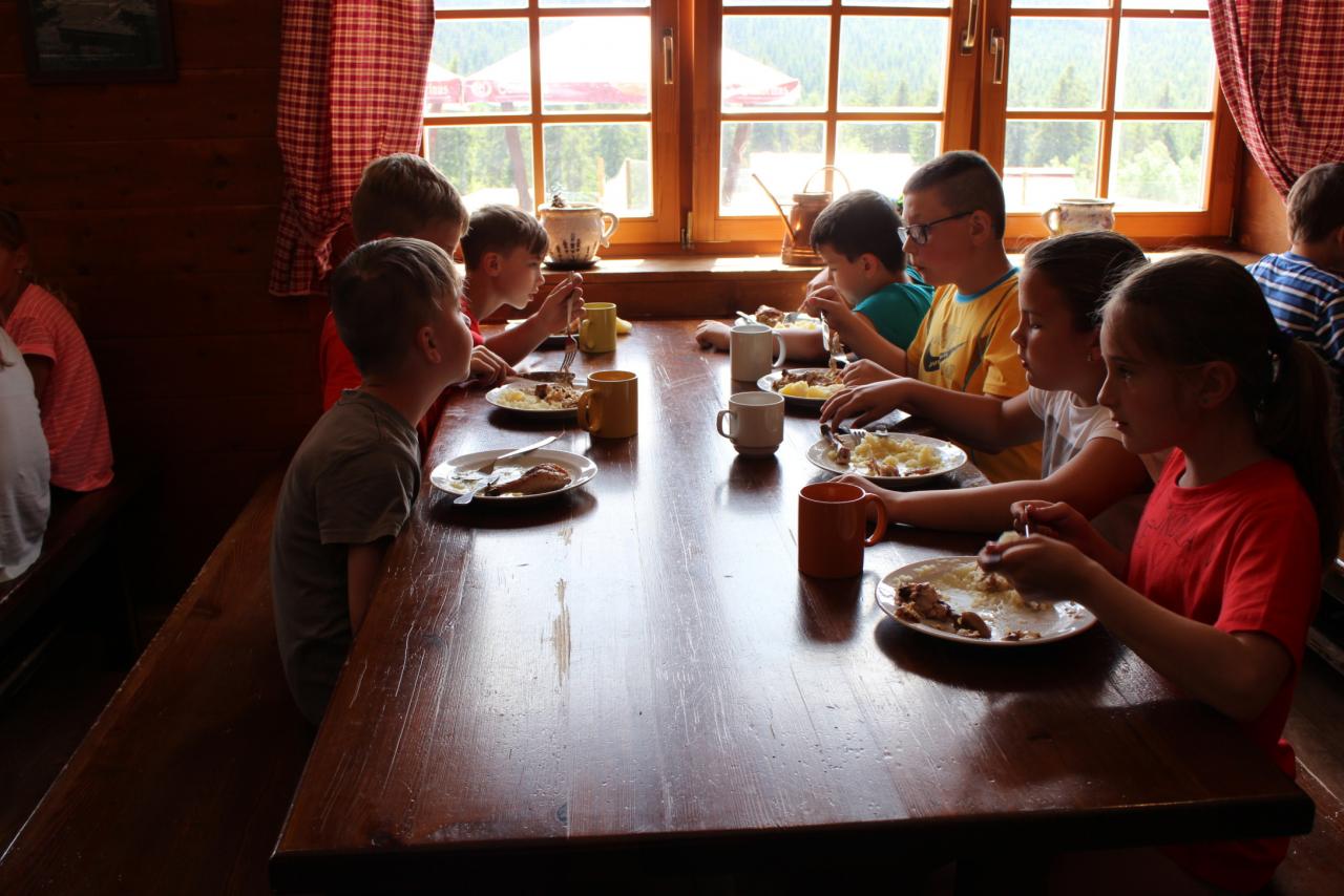 V úterý je dobrý den, vybíjenou zas hrajem. Kdo chce trochu odpočívat, může trička dokreslovat. K obědu pak kuře bylo, mile nás to překvapilo. Vycházka se zvrtla v pochod!!!! Jedna bouda, druhá, třetí, razítka tam sbíráme, zdraví vzduch tam dýcháme. A co víc si zítra přát, budem Sněžku dobývat?