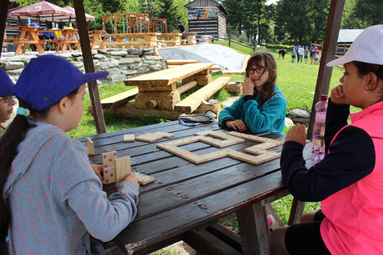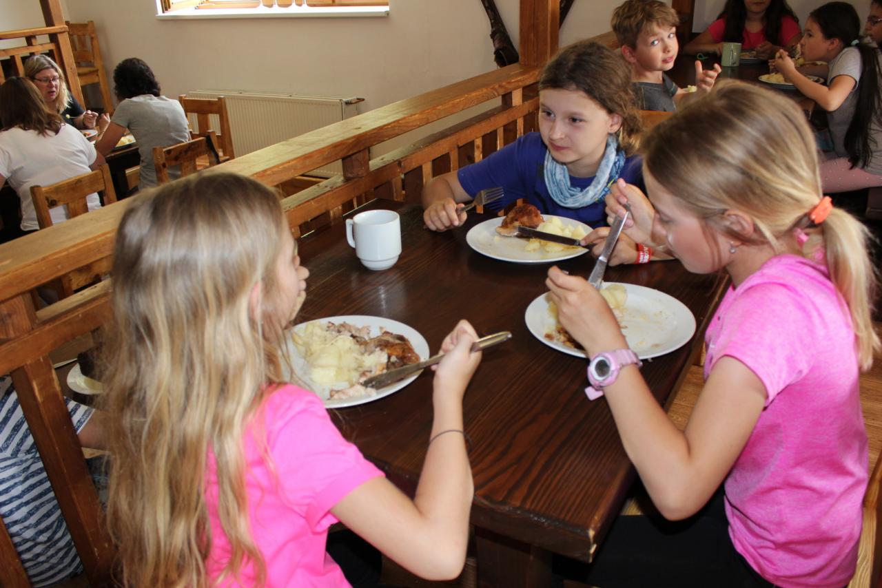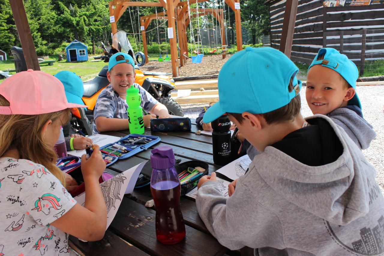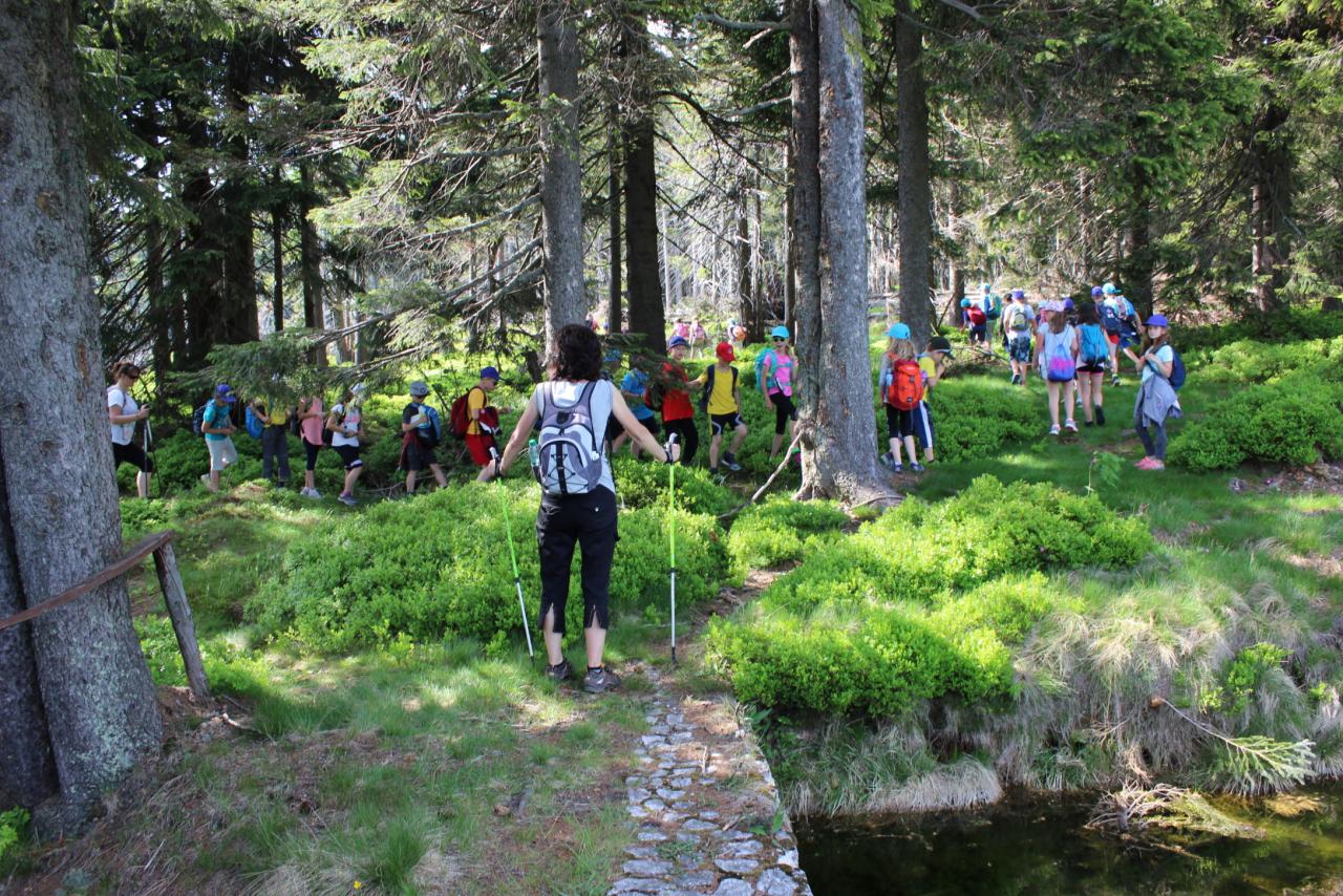 V úterý je dobrý den, vybíjenou zas hrajem. Kdo chce trochu odpočívat, může trička dokreslovat. K obědu pak kuře bylo, mile nás to překvapilo. Vycházka se zvrtla v pochod!!!! Jedna bouda, druhá, třetí, razítka tam sbíráme, zdraví vzduch tam dýcháme. A co víc si zítra přát, budem Sněžku dobývat?