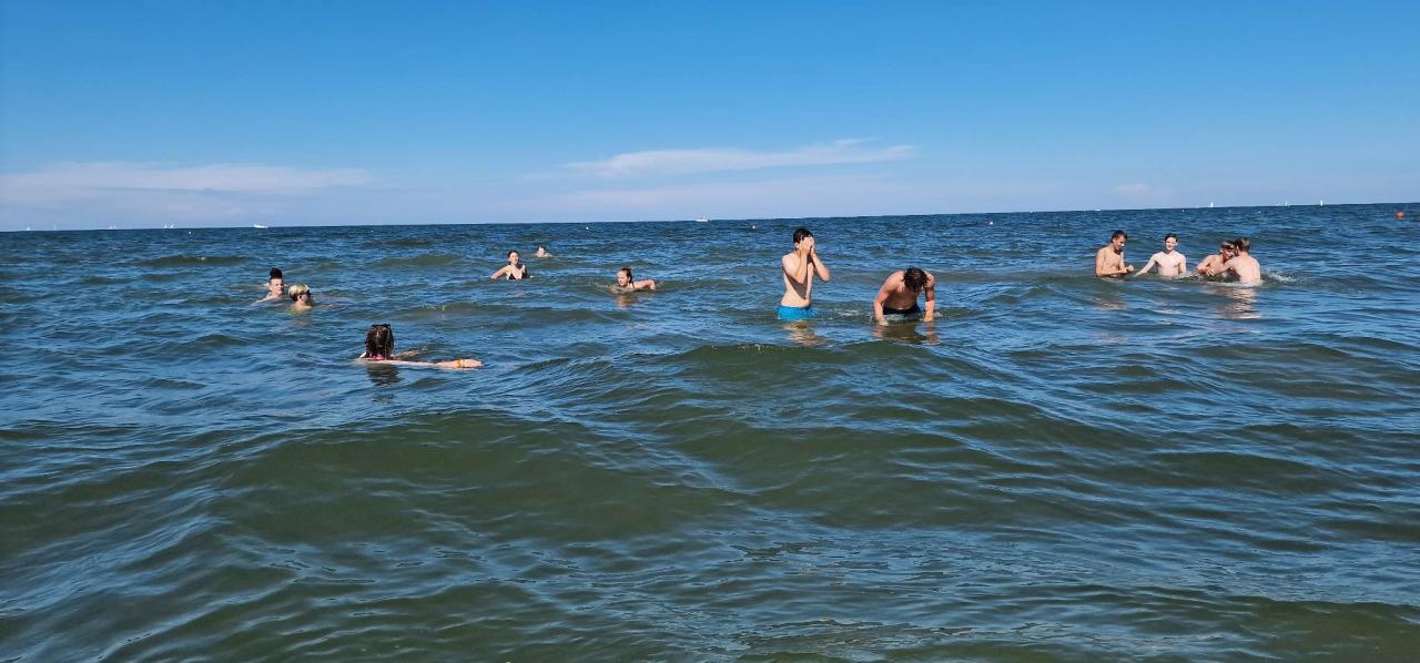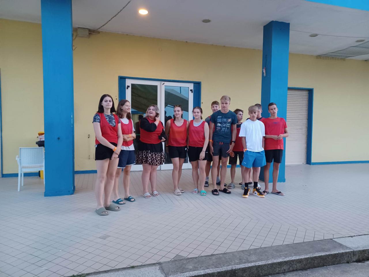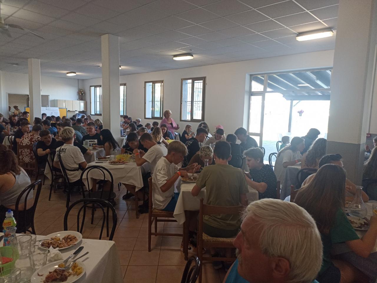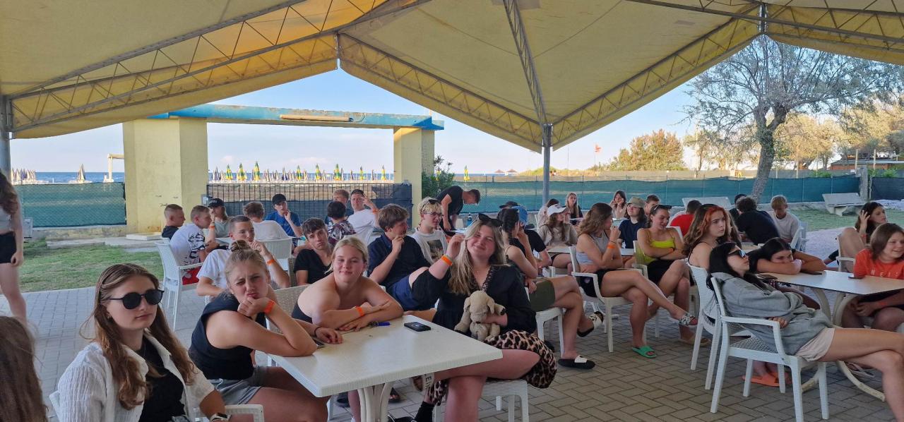 Cesta byla celkem bez problémů a zdržení nebylo téměř žádné. Počasí bylo krásné, sluníčko svítilo a my si čekání na ubytování zkrátili sportem. Také jsme se podívali po areálu a seznámili se s okolím. Kolem oběda jsme se ubytovali, vybalili a ve tři hodiny jsme šli na pláž a vyzkoušeli teplotu moře. Vál příjemný vánek a sluníčko připalovalo, tak někteří z nás začali pěkně červenat. Po dlouhé cestě jsme vyhladověli a těšili se na večeři. Po jídle nás čekalo rozdělení do družstev podle barev, vybrali jsme si originální název svého družstva a bojový pokřik. Pak už nás čekala večerka a zasloužený odpočinek.
