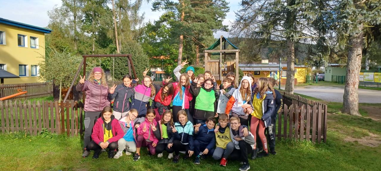 Počasí od rána nic moc, přesto si kurz užíváme. Hráli jsme bowling a dělali jsme zábavné skupinové aktivity.