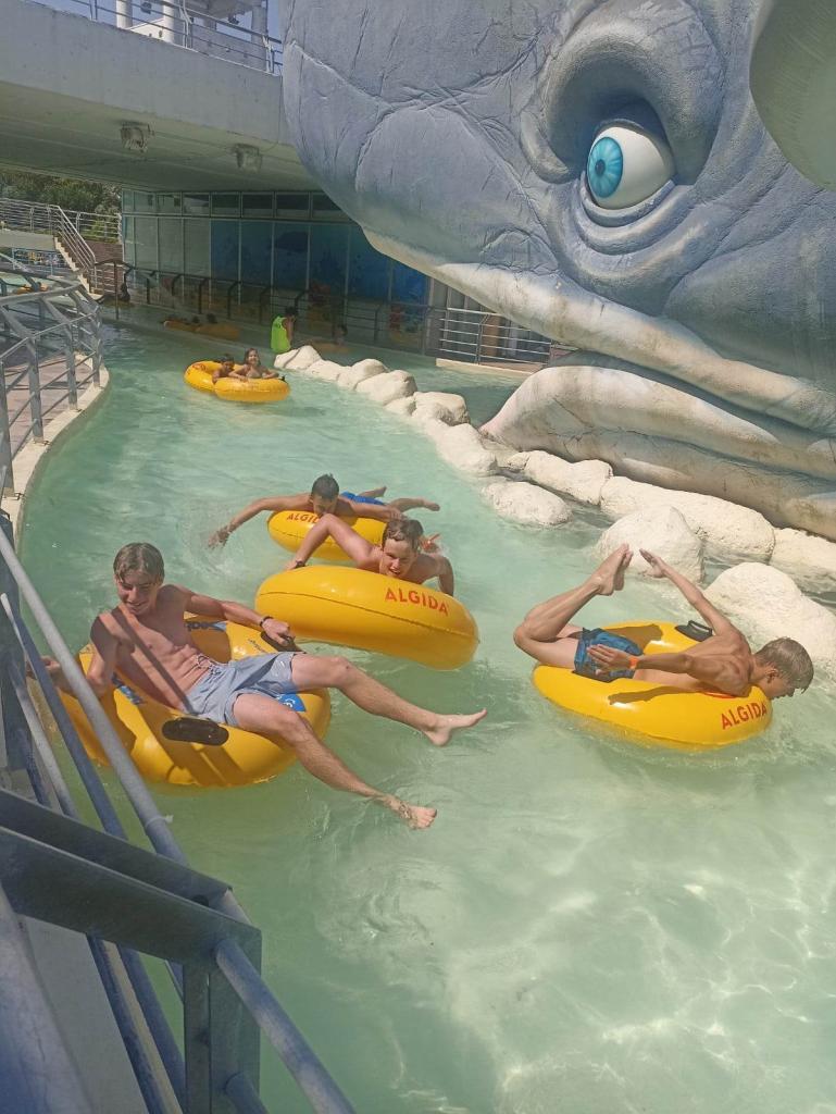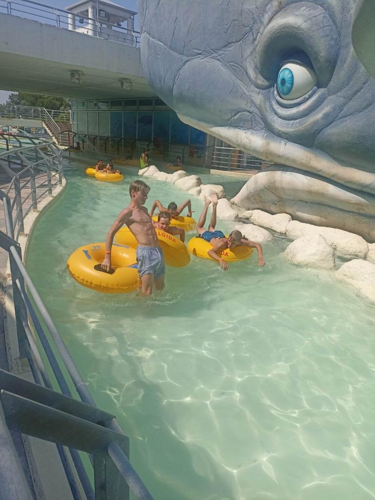 Celý den jsme si proto krátili čekání na odjezd v Aquaparku Atlantica, který se nachází nedaleko místa, kde jsme byli ubytováni. Celý horký a slunečný den jsme tedy trávili v bazénu, na tobogánech a dalších vodních atrakcích. Ti, co chtěli nakoupit na cestu domů ještě nějaké suvenýry, dárky nebo občerstvení, se vydali po obědě do města nebo do cca 1,3 km vzdáleného supermarketu. Odjez byl naplánován na půl šestou. V pět jsme naložili zavazadla a podle plánu se vydali na cestu směrem k domovu.