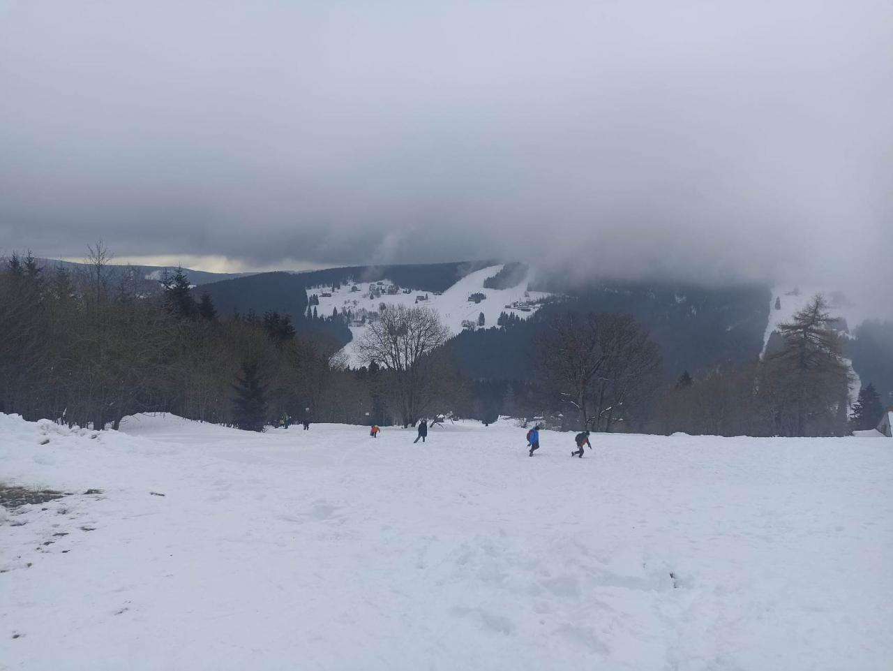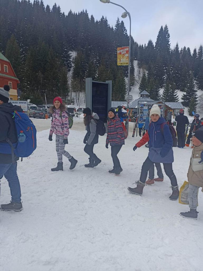 ale počasí nám celkem přálo, tak jsme zanedlouho byli u hotelu. Do hotelu jsme dorazili kolem druhé hodiny, vybalili zavazadla a lyže a nastoupili jsme na svah, kde jsme se rozřadili na základě našich schopností do družstev. Po večeři nás čekalo poučení o bezpečném a slušném chování na hotelu.