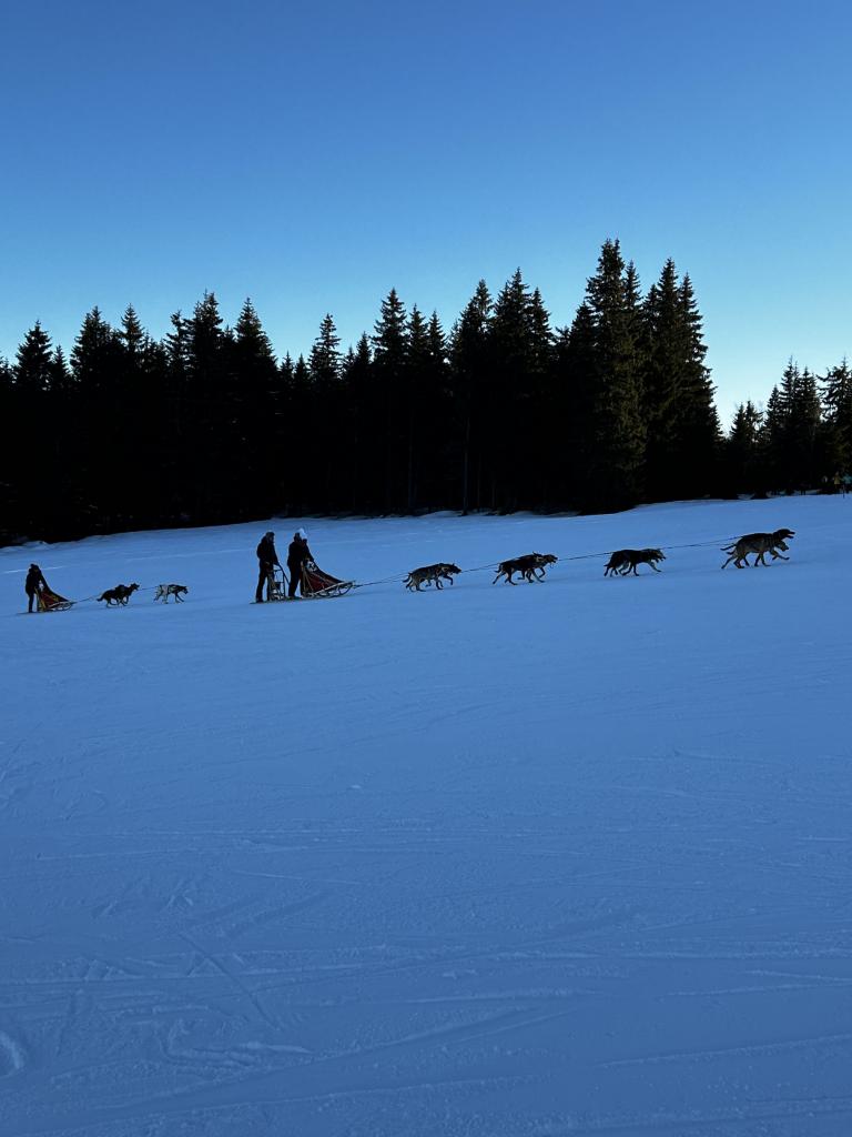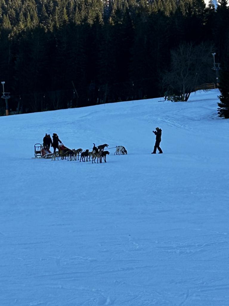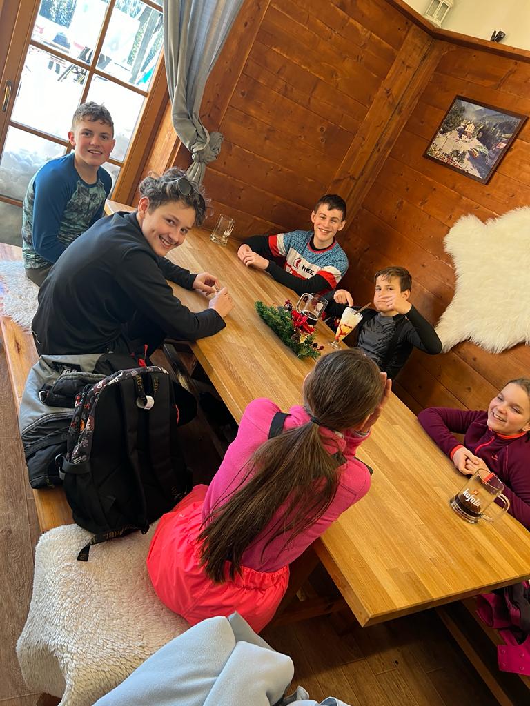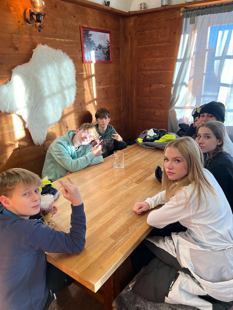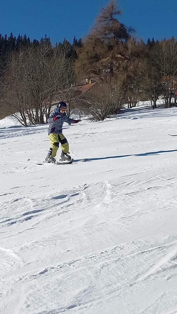 Dnes bylo nádherně tyrkysově modré nebe, sluníčko se opíralo do zasněžených kopců, a tak jsme se, kromě výcviku, mohli celý den kochat nádhernými panoramaty hor. 4. a 5. družstvo lyžovalo pod hotelem.