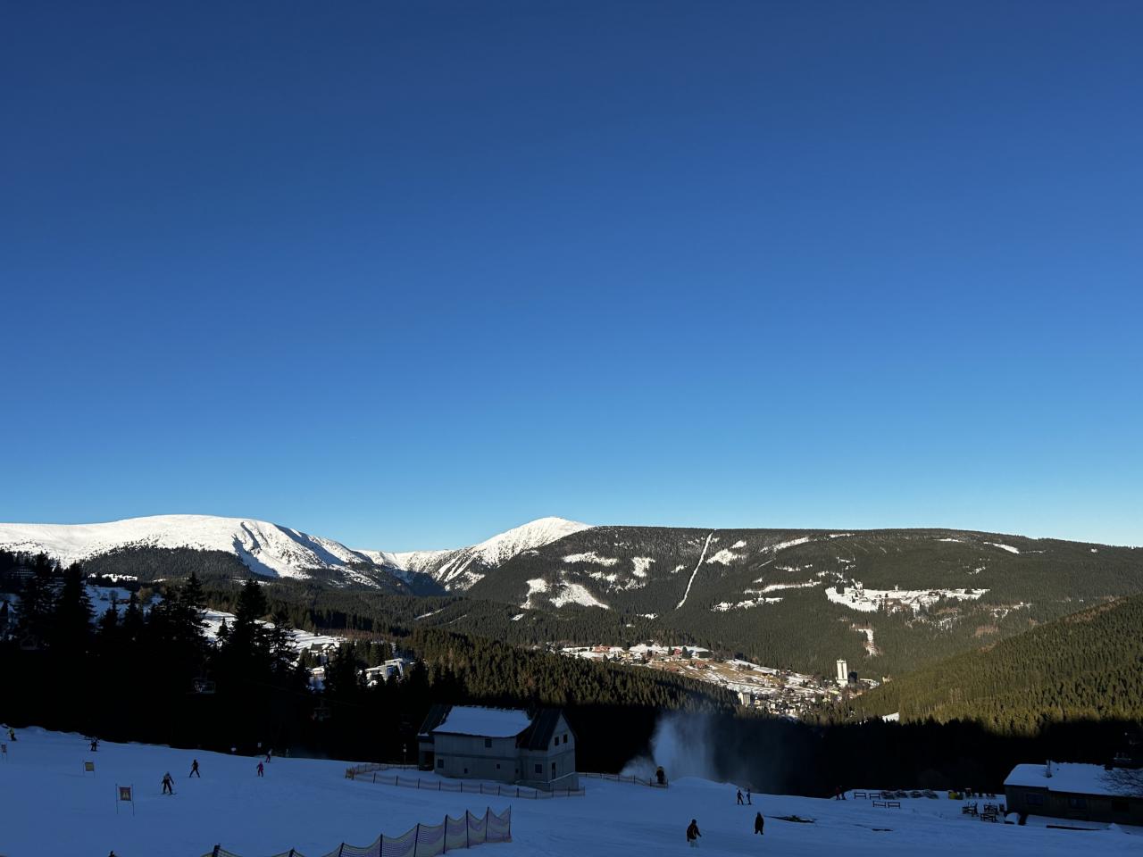 Všichni se moc snaží a výsledky se postupně dostavují. 3. družstvo lyžovalo celý den na Javořáku, Smrku, Zahrádkách a na Klondiku. Žáci jsou už na lyžích mnohem jistější, zvládají delší i kratší oblouky, dokonce i jízdu v náročnějších podmínkách, jako je hluboký sníh nebo zmrzlý povrch. 1. a 2. družstvo mělo dopoledne půldenní odpočinek a těsně po obědě vyrazilo lanovkou na Zahrádkách na Krkonošskou magistrálu. Tam je čekal běžecký výcvik a odměna na Kolínské boudě. Po večeří zopakujeme tři společenské tance, které jsme se v předchozích dnech naučili, abychom se připravili na taneční soutěž. Pak nás čeká karneval s diskotékou.