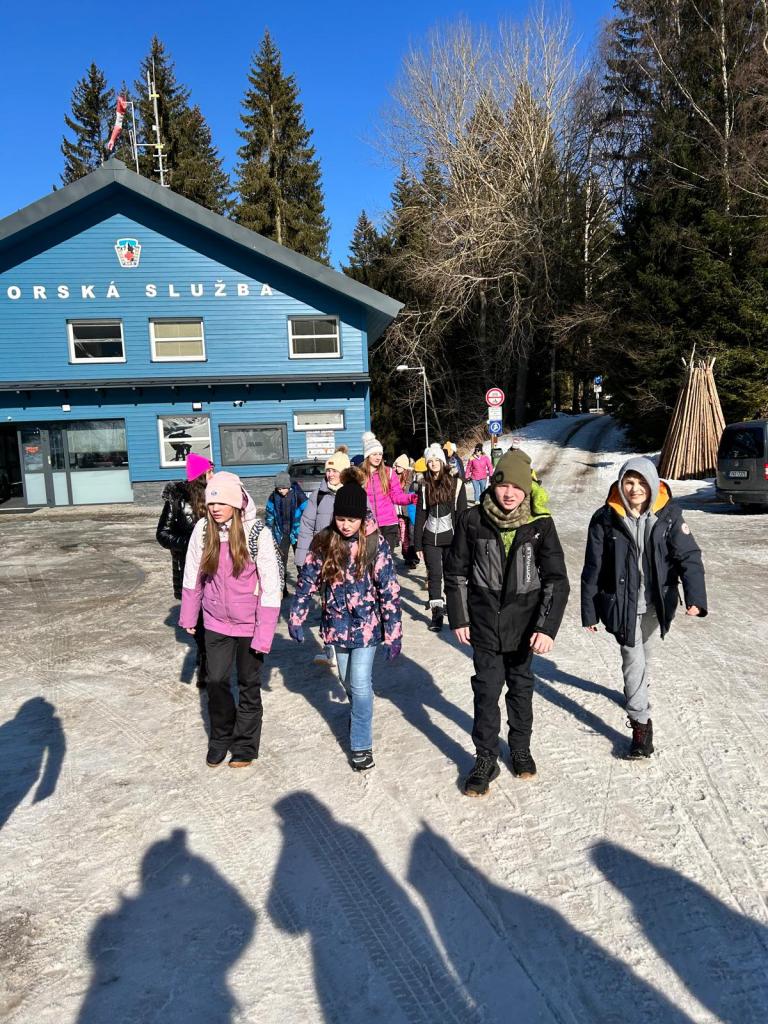 Byl to slušný výšlap do kopce. K hotelu jsme vystoupali před 14 hodinou. Ubytovali jsme se, vybalili zavazadla a lyže. V 15,30 hodin jsme se odebrali na svah v lyžařské výzbroji a rozdělili jsme se do družstev dle svých schopností, protože od zítřka zahájíme lyžařský výcvik po družstvech. Po večeři nás čekalo poučení o bezpečném a slušném chování na hotelu a pravidla FIS, která jsou pro bezpečný pohyb na svahu velmi důležitá.