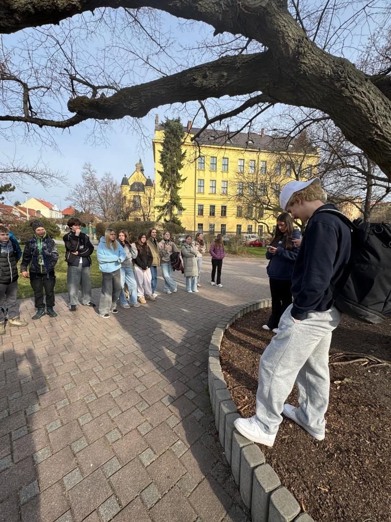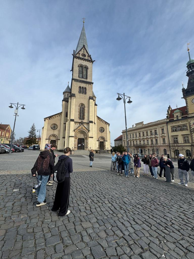 Součástí programu byla také krátká procházka po centru Kladna, během které žáci poznávali významné místní budovy a připomínali si historické a kulturní souvislosti našeho regionu. Žáci 8.C měli navíc štěstí a potkali Jaromíra Jágra, se kterým se i vyfotili.