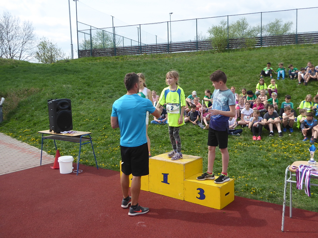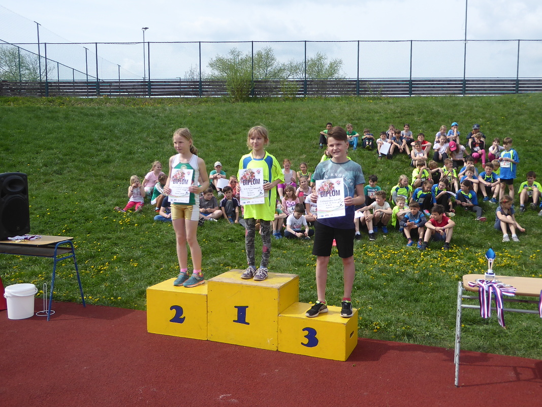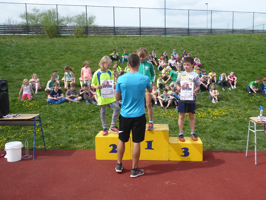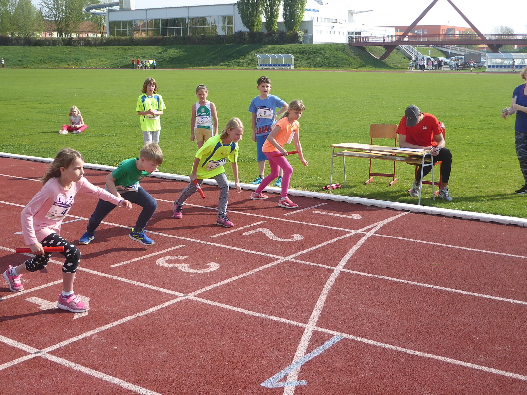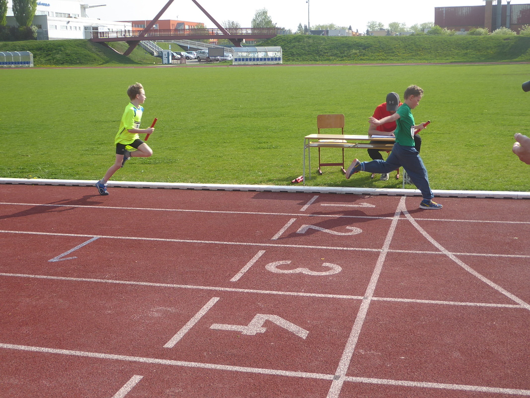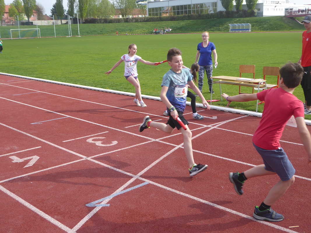 V úterý se žáci 1.- 5. tříd naší školy zúčastnili tradiční soutěže – štafetového poháru. Na okresní kolo přijely do Slaného na městský stadion celkem 4 školy, ačkoliv jich bylo přihlášeno 6. Kromě všech slánských škol to ještě byla škola ze Zlatník. Soutěž se skládá z následujících disciplín – 8 x 100 m žáků a žákyň složených z 1. – 3. třídy, dále 8 x 100 m žáků a žákyň 4. a 5. tříd a poslední disciplínou je štafeta 8 x 200m, kde polovinu týmu tvoří žáci a žákyně 1.-3. třídy, polovinu potom 4.-5. třída. Vždy jsou napůl dívky a chlapci. Vítězem se stává družstvo, které v součtu všech tří disciplín dosáhne nejlepšího času. Naše družstvo pod vedením pana učitele Hykeše si vedlo víc než dobře, klidně můžeme napsat, že výborně. V první štafetě sice obsadilo druhé místo za závodníky ze Zlatník, ale dvě druhé štafety už jednoznačně vyhrálo a nebyl tedy žádným překvapením, že konečným vítězem byla tedy 3.ZŠ Slaný. Kromě titulu okresního přeborníka si naše družstvo vybojovalo postup do krajského finále, které se uskuteční v Berouně. Velmi příjemná byla i skutečnost, že fanoušci 3. ZŠ vytvořili super bouřlivé prostředí, které hnalo naše závodníky za vítězstvím. Jim patří velké poděkování. A kdo tvořil náš vítězný tým : Čadková M., Holas R., Nováková K., Lokvenc T., Sachlová K., Bečvář M., Bartáková J., Hrach M., Zinke D., Korbelová N., Hejčová N., Makara J., Fišková K., Hadač M., Kučerová A., Krček A., Hůlka J., Hamplová M., Matoušek O., Kučerová K., Suchopárek T. Blahopřejeme a děkujeme za vzornou reprezentaci školy! Radek Jánský, učitel TV