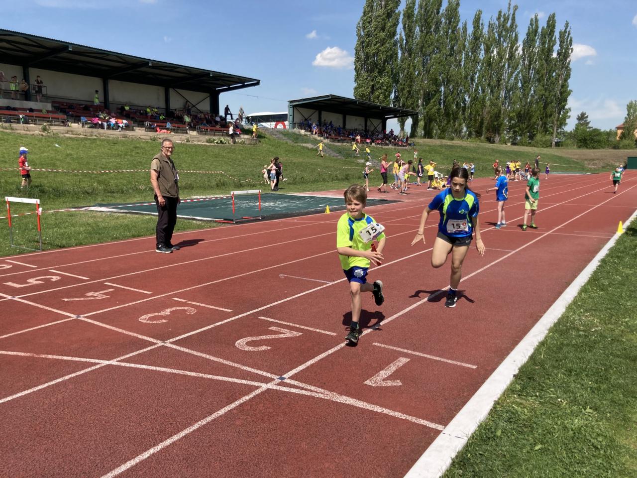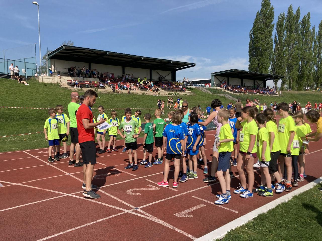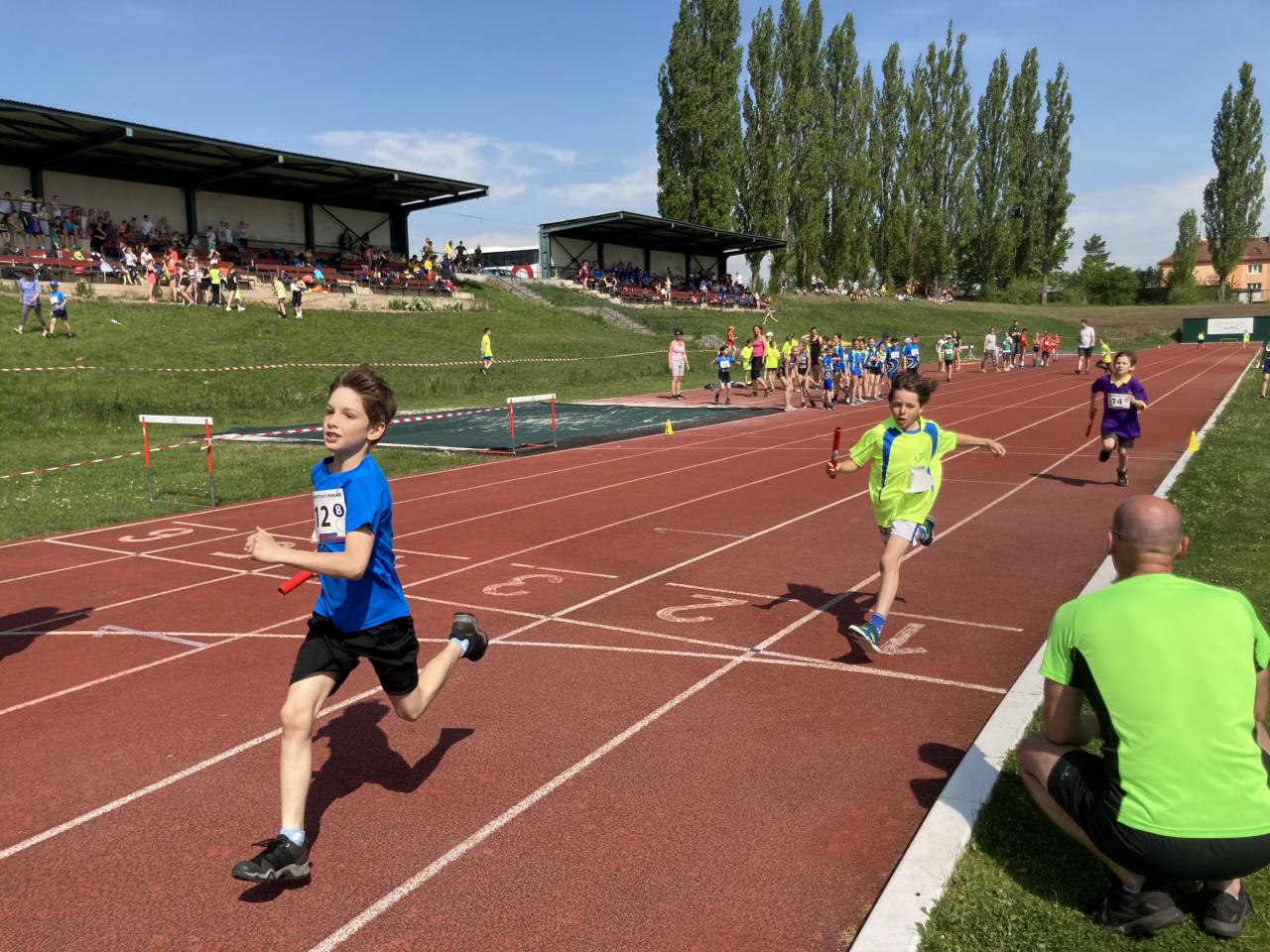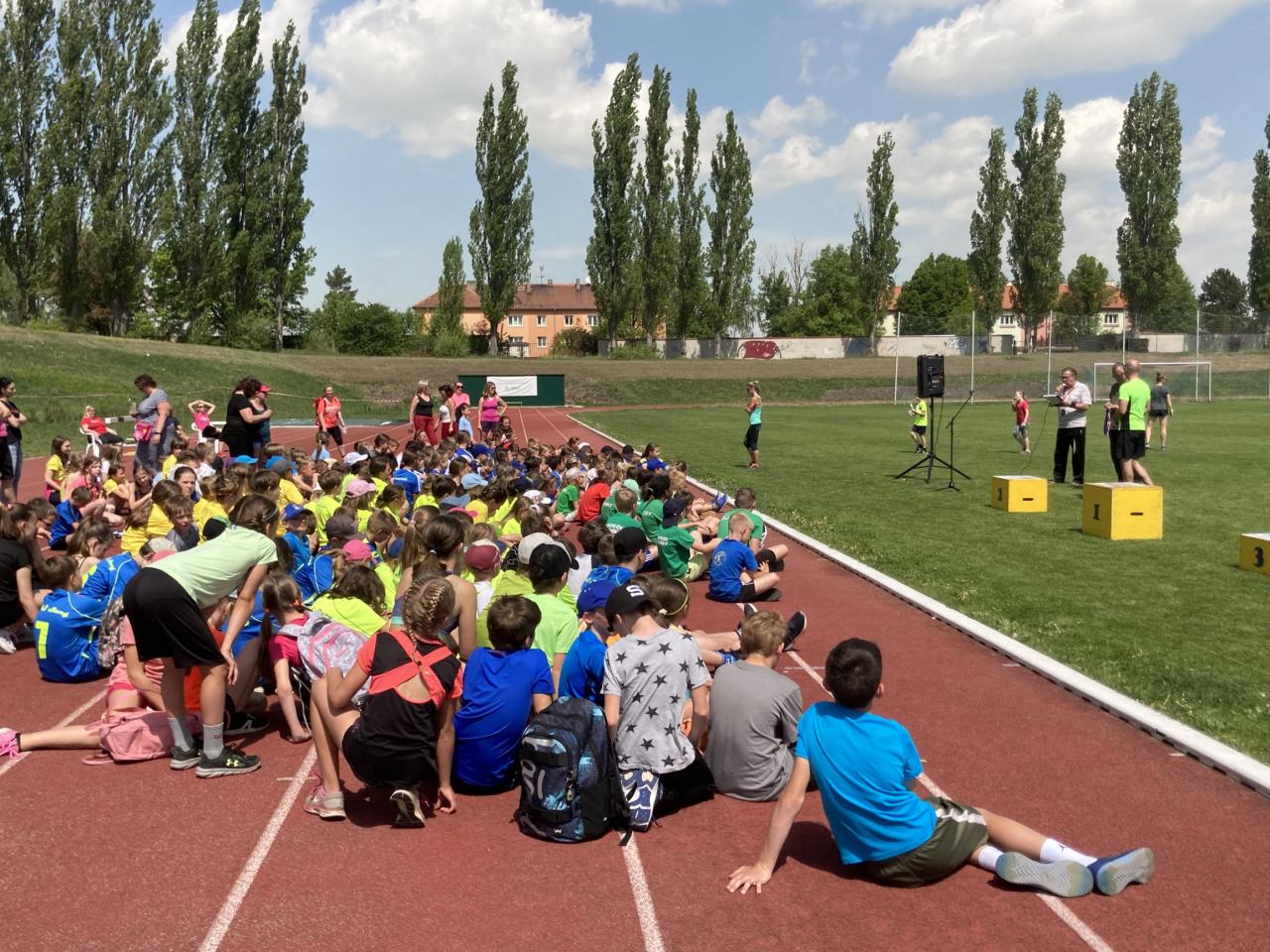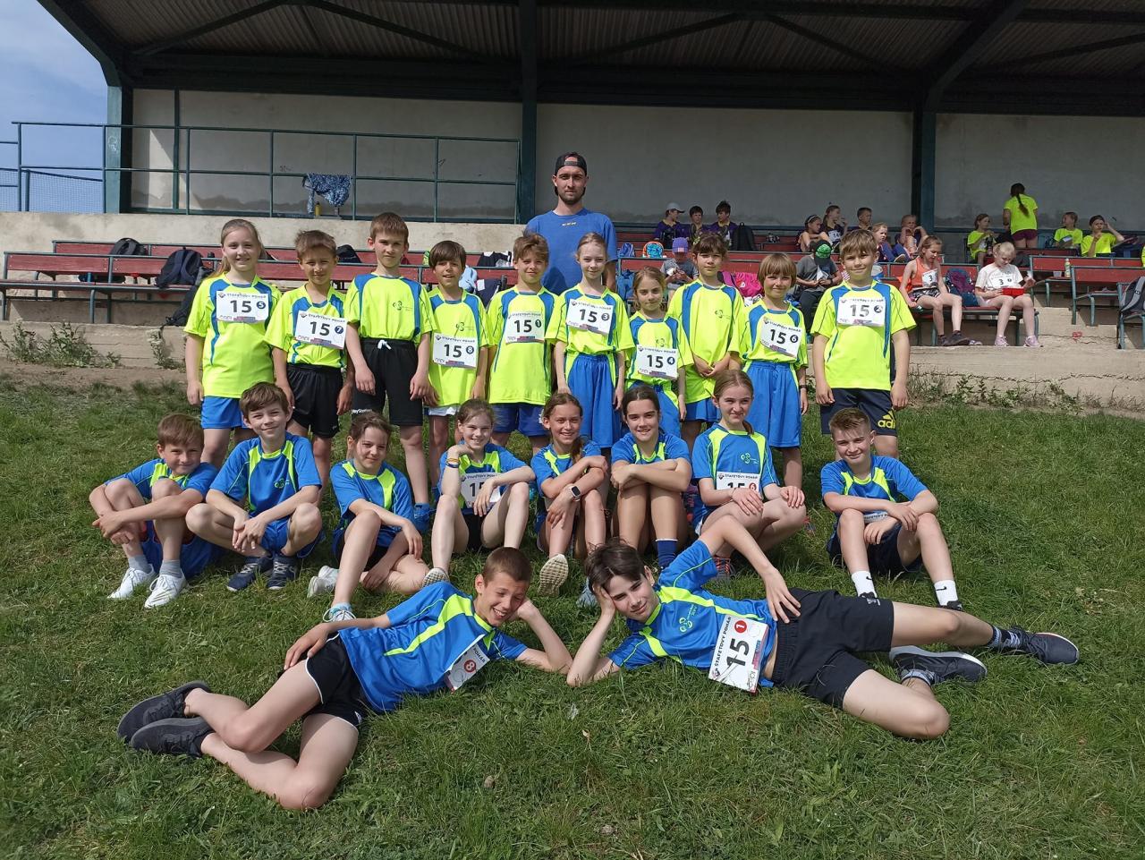 Sešlo se zde celkem 13 základních škol ze Středočeského kraje. Už od rozcvičení bylo vidět, že do Slaného přijeli opravdu precizně připravení atleti prvního stupně základních škol. Děti již od začátku nacvičovaly výborně sehrané předávky, běhaly ve špičkových sprinterských tretrách a na techniku běhu bylo radost pohledět. Zahajovalo se štafetou 8x100m starších, tedy 4. a 5. ročníků, za každou školu nastoupili 4 chlapci a 4 děvčata. Nejlepší čas dosáhla ZŠ Neratovice. Druhá v pořadí byla štafeta 8x100m mladších kategorií, tedy 1. – 3. tříd. Zde jsme měli vítěze ze ZŠ Brandýs nad Labem. Poslední disciplínou byla štafeta na 4x200m složená ze 4 mladších a 4 starších, vždy mix 2 chlapci a 2 dívky. Zde byla opět nejlepší štafeta ze ZŠ Neratovice. Naši reprezentanti na tom nebyli vůbec špatně, do závodu jsme postupovali 13. časem z okresního kola. Nicméně v upravené sestavě jsme výborně běželi, bezchybně předávali a hlavně bojovali! Celkově z toho bylo krásné 8. místo, což v tak nabitém závodě považuji za obrovský úspěch, jelikož jsme za sebou nechali i sportovní třídy zaměřené na atletiku. Na 3. místě celkově skončili žáci ze ZŠ Kolín, na 2. místě a se vstupenkou na republikové finále skončila ZŠ Brandýs nad Labem a vítězem se stala ZŠ Neratovice také se vstupenkou na republiku.