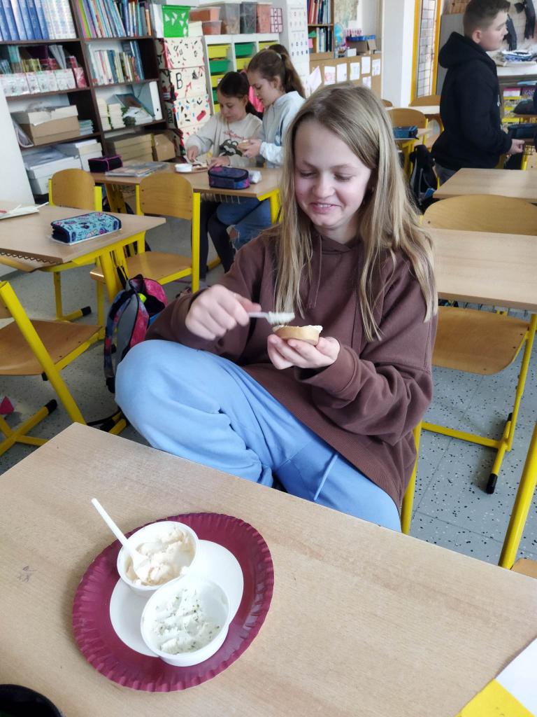 V rámci doprovodného vzdělávacího opatření projektů „Ovoce a zelenina do škol“ a „Mléko do škol“ proběhla ochutnávka mléčných výrobků.