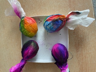 Podívejte se, jaká krásná vejce si vyrobily děti ze 3. A. Stačí si vzít fixu, s ní pomalovat papírový ubrousek, do toho zabalit vajíčko a přestříkat ho octovou vodou. Doufáme, že všechny kraslice se budou líbit stařečkům a stařenkám v DPS, kam je děti z 3. ZŠ odnesly jako dáreček.