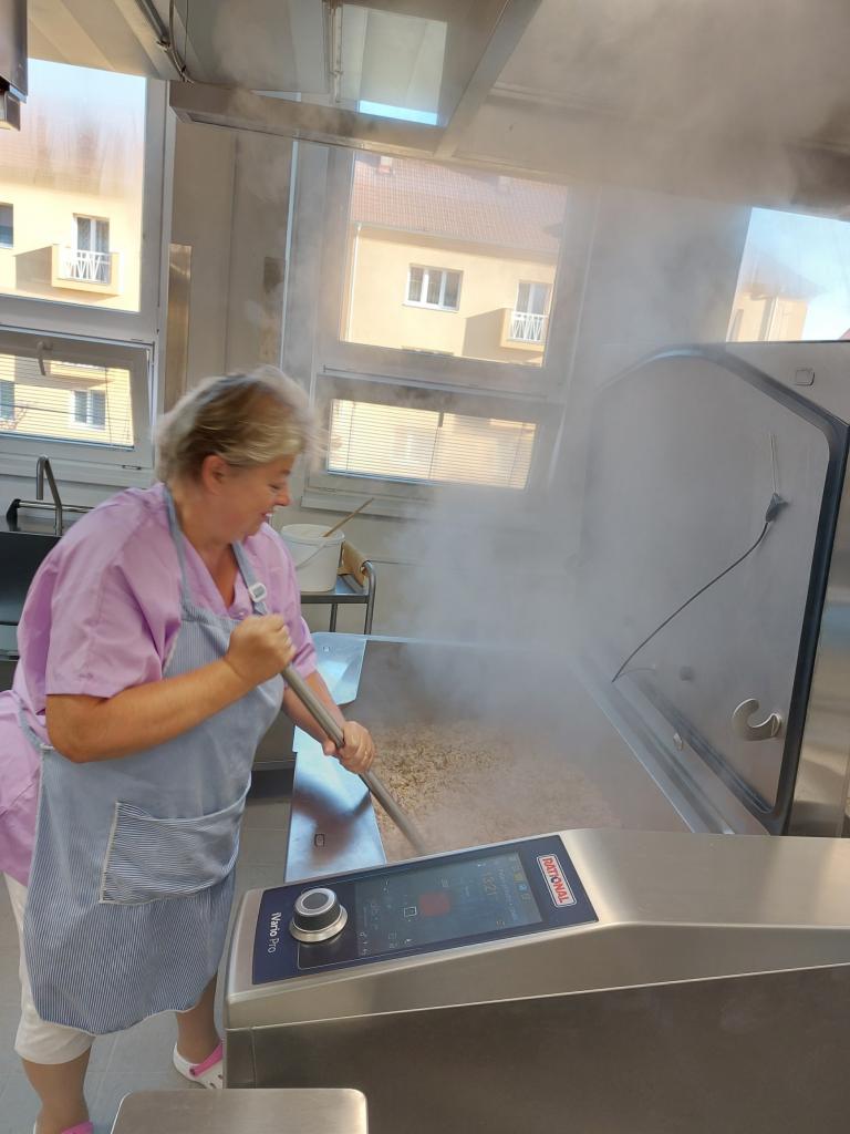 Je skvělé, že se celá rekonstrukce stihla v termínu prázdnin. Dnes vaří naše paní kuchařky první oběd a musím říct, že po dnech úklidu a seznamování se s novými technologiemi se z kuchyně linou vůně a vypadá to tam „jako v kuchyňce“.